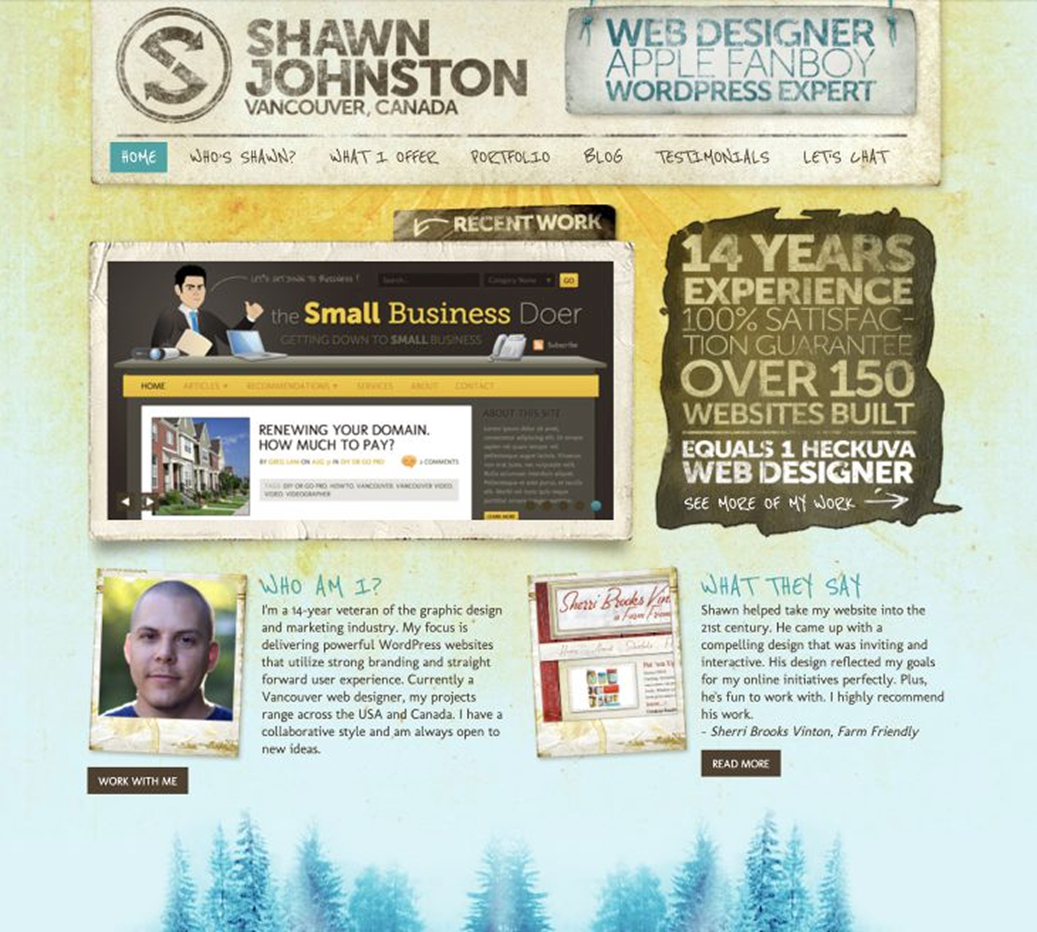 After doggedly hunting for leads on Craigslist, Shawn finally built up enough of a client roster, reputation, and Google rankings for his volume of work to become too much. Abe Friesen was hired as a project manager to help answer questions and support existing websites.