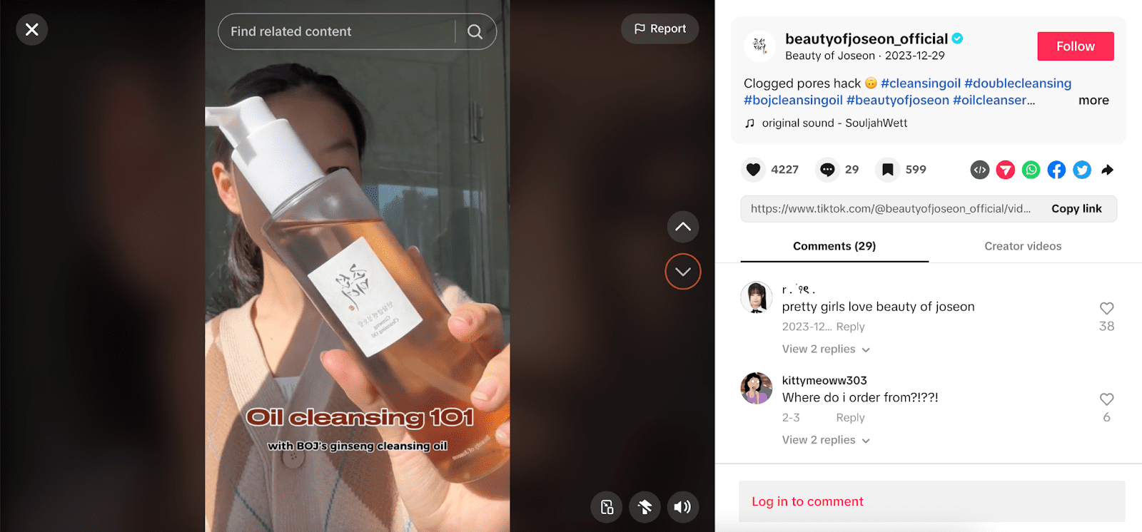 For example, Beauty of Joseon is a South Korean brand that consistently publishes skincare tips and tricks on its social media channels. While not all social media users who see this content are looking to purchase skincare products, the brand builds familiarity with potential future prospects. It maximizes the chances of these users choosing BOJ products in the future.