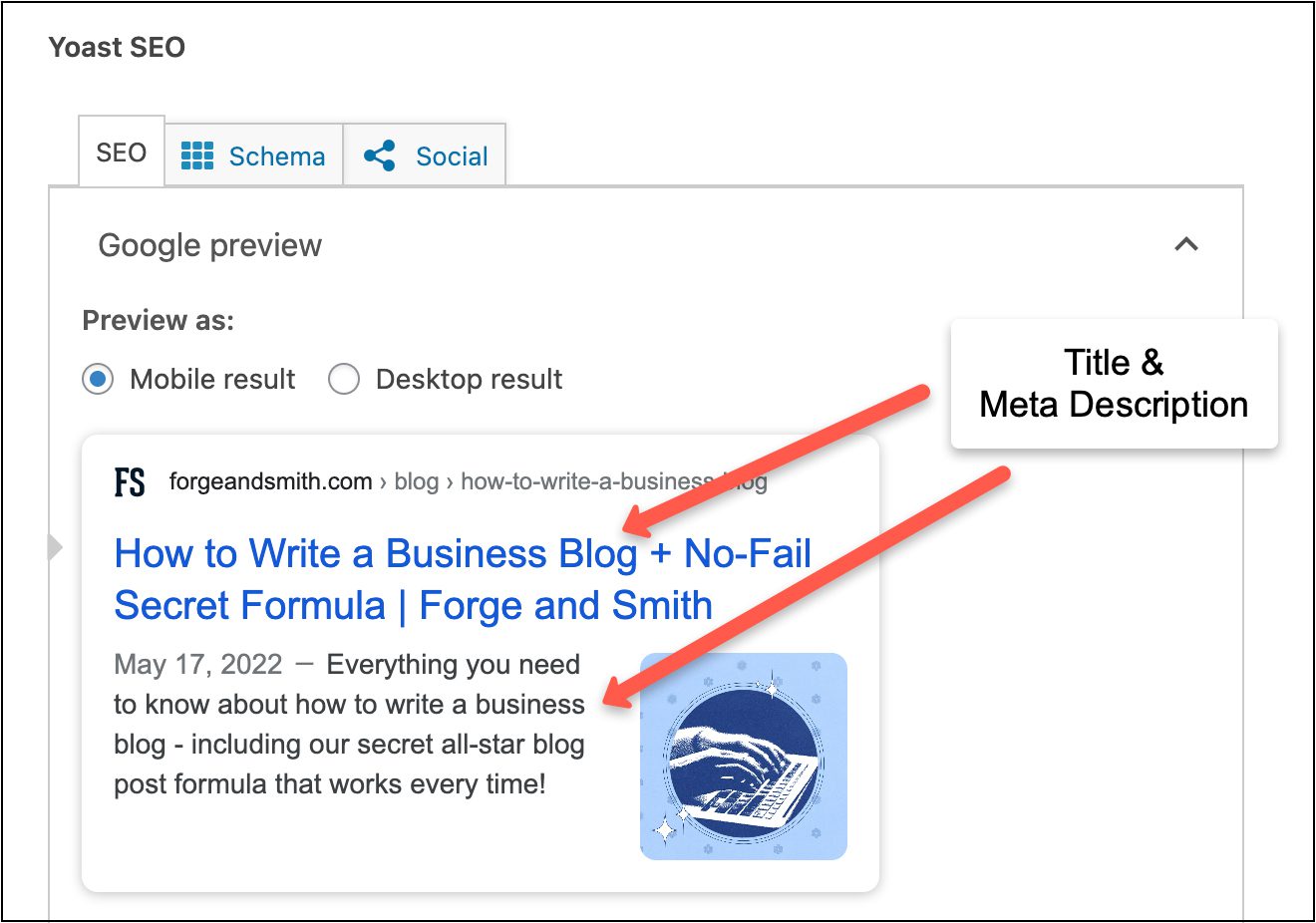 - SEO page titles: If you use WordPress and the Yoast SEO plugin, you can easily set a keyword-friendly title that’s just for Google, while the title that appears on your site is written more for humans