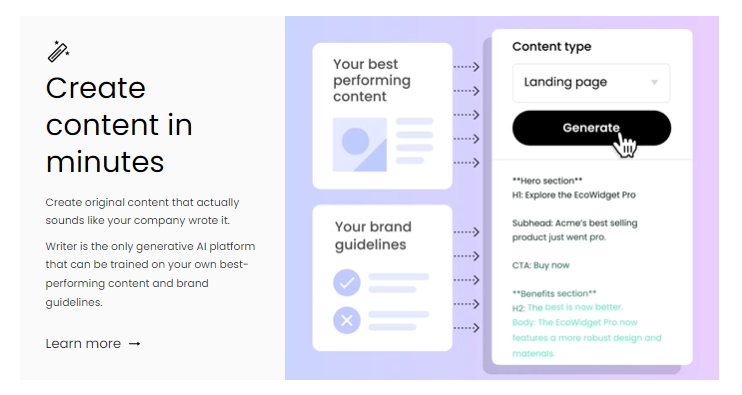 If you haven’t already, consider using generative AI technology to support your content creation processes. Writer, for instance, can help you create engaging and relevant content in line with your brand’s vision and business goals.
