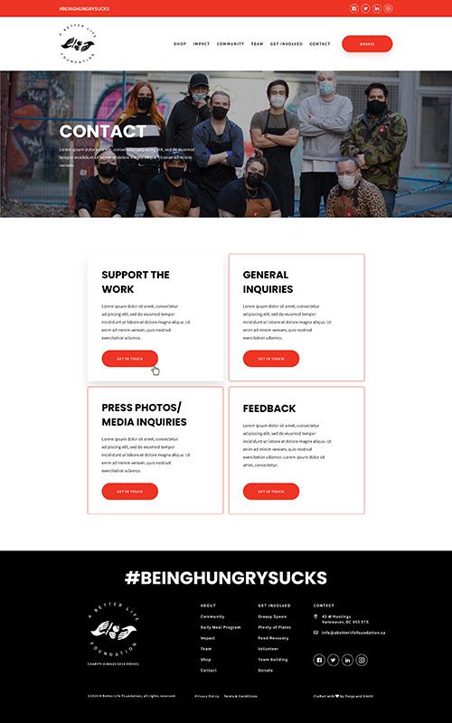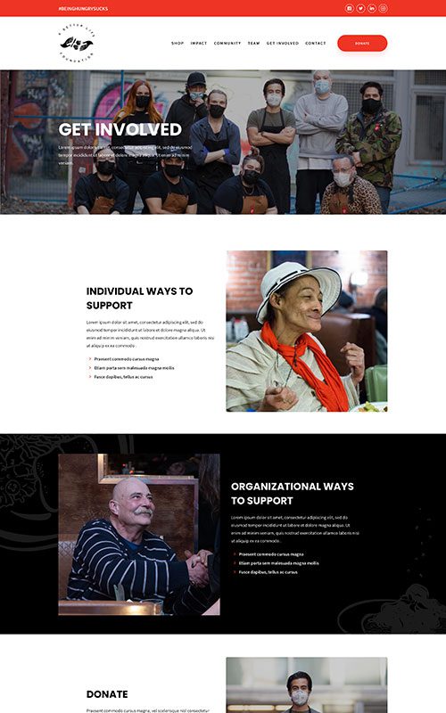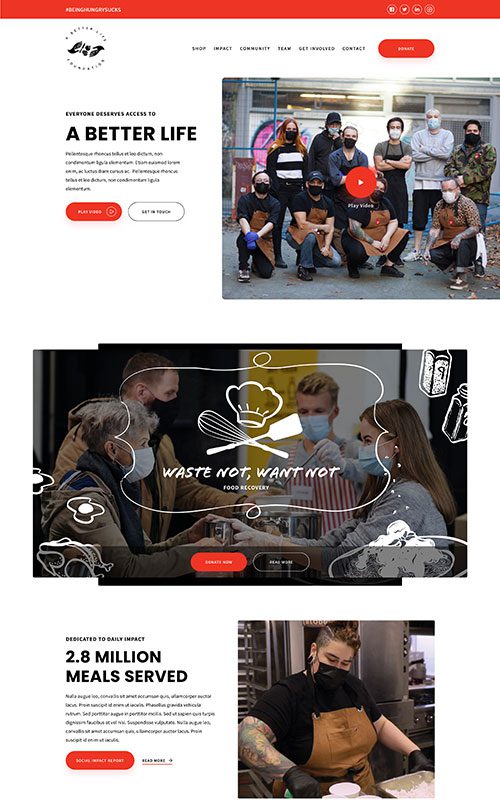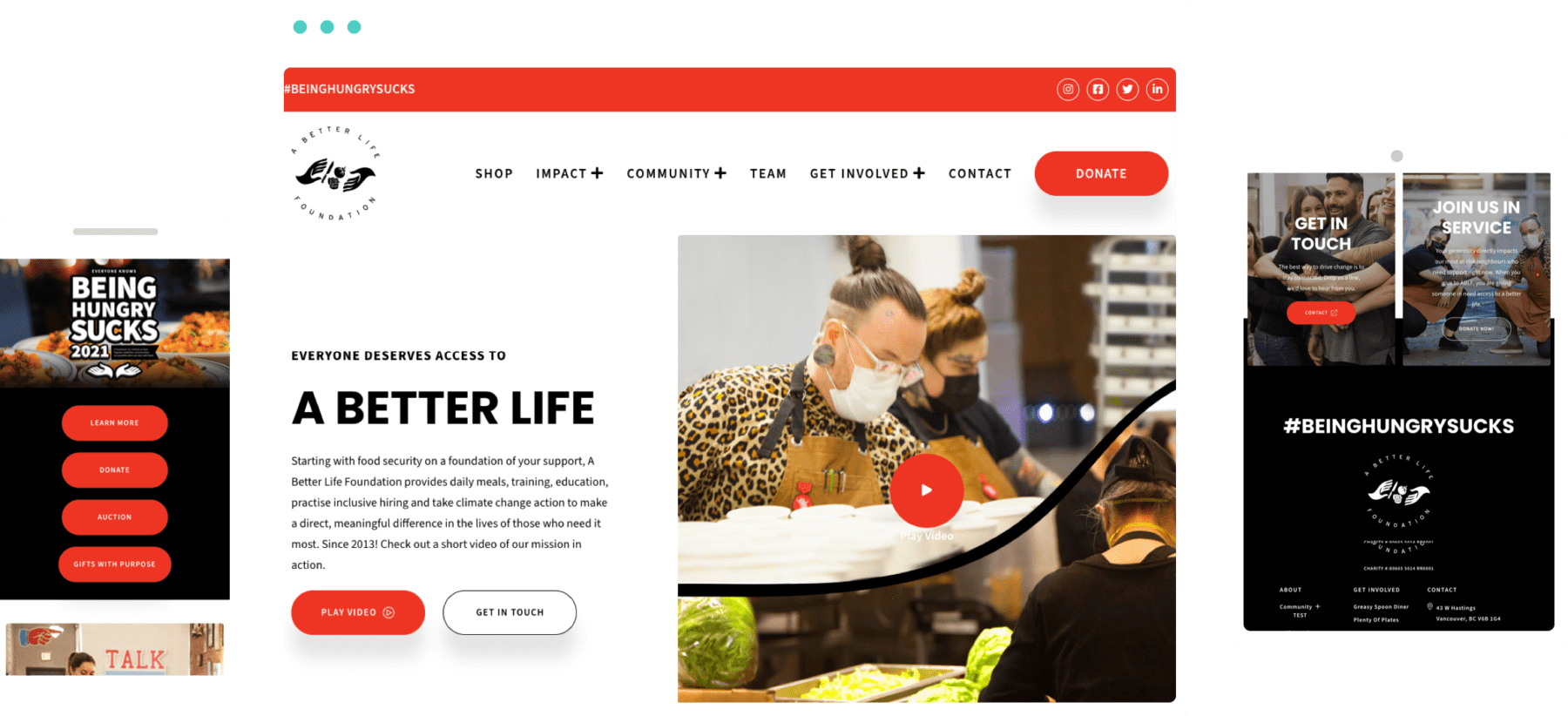 A Better Life had striking branding, but it was mostly buried by their limited old website. We had a great opportunity with the new web design to help them create more space to showcase their authentic photography and engaging videos. Big bold headings and vivid red accents draw the eye to key content, and further into their story.