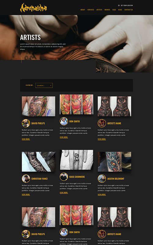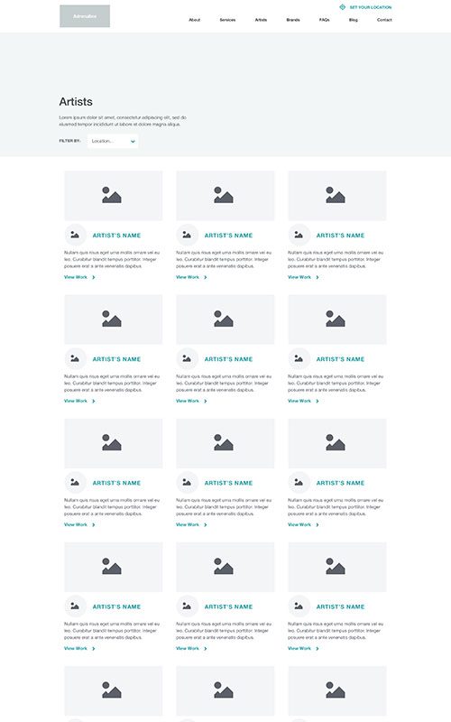 The new Adrenaline website is more fun, more visual, and easier to navigate than ever before. Visitors can quickly set their location and view customized content, or use the smooth filtering options on the Artists and Blog pages to quickly find what they seek. The new Blog landing page design makes their educational content more useful resource.