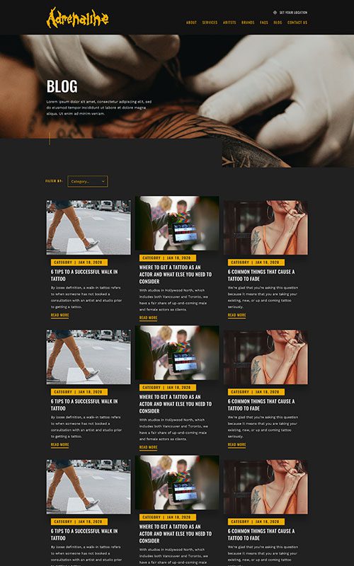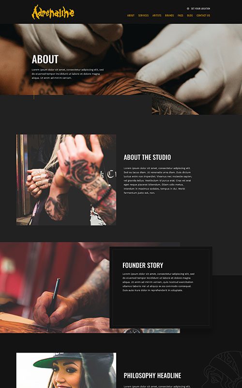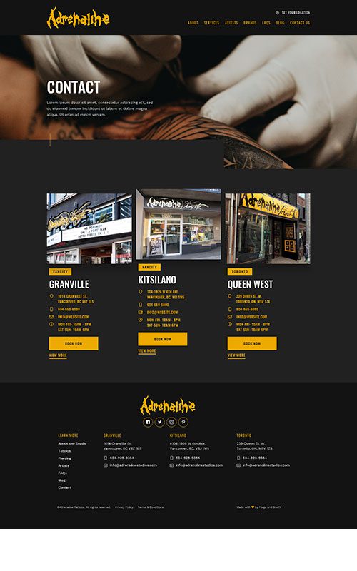 We were excited when Adrenaline contacted us to redesign their website. Not only does most of the Forge and Smith team have tattoos, but we knew it would be an exciting visual story. Adrenaline has been around for over 20 years, and have a great reputation. Their old website wasn’t bad, it just wasn’t serving the optimal experience for their audience.