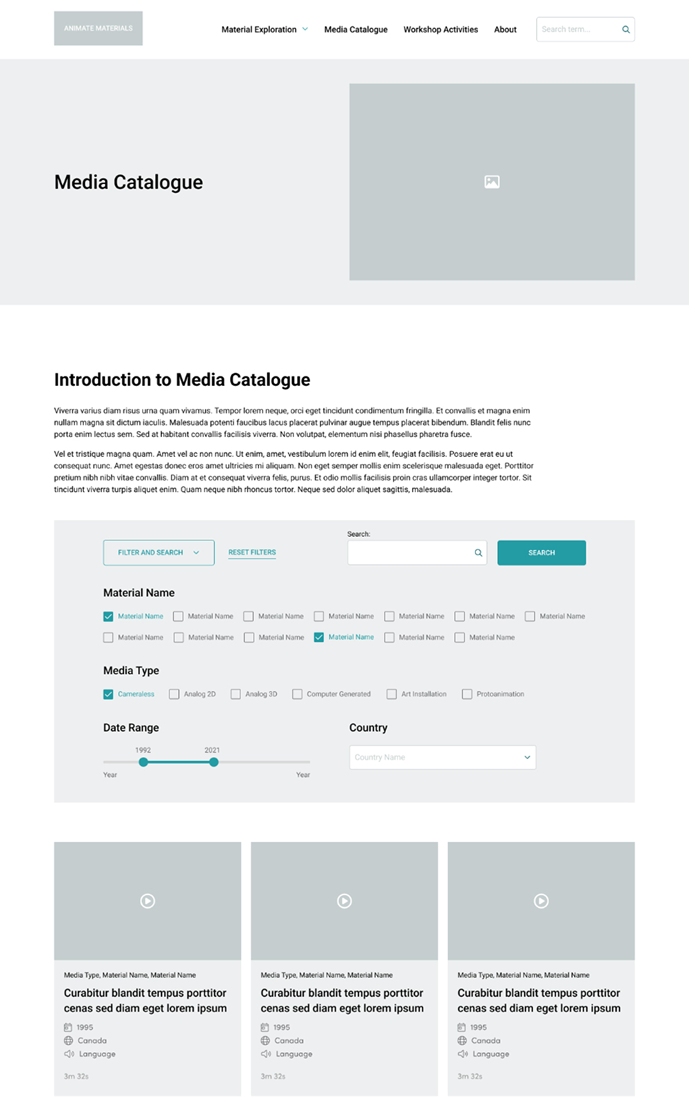 The website’s needs weren’t yet documented, so our first task was to help their team decide on what kind of content they’d need, and how it should be grouped. From there we created a sitemap, and then got into UX wireframing. Although the site is small, they needed complex filters to empower visitors to search the media catalogue.