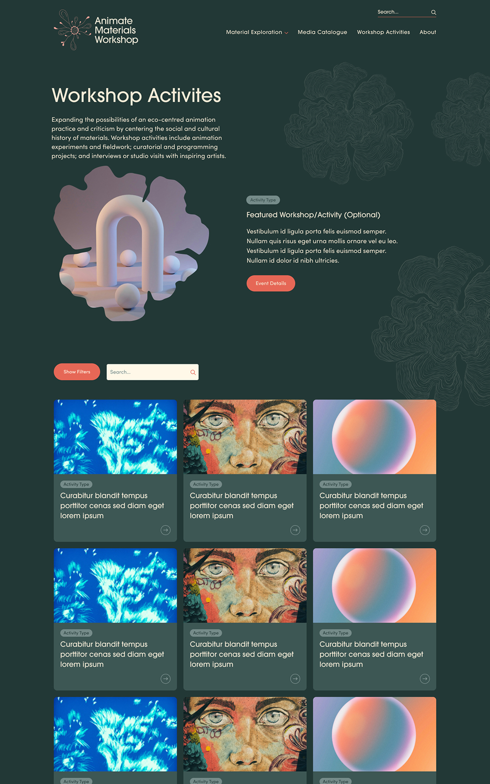 Animate Materials’s founder approached us about designing a custom website to become the database for their new research workshop. We always enjoy our partnerships with university departments, and this was our first educational project related to art and design.