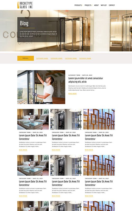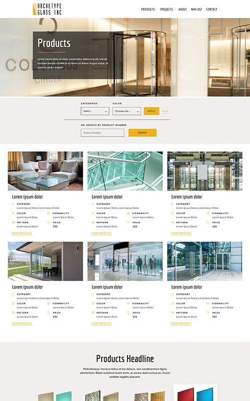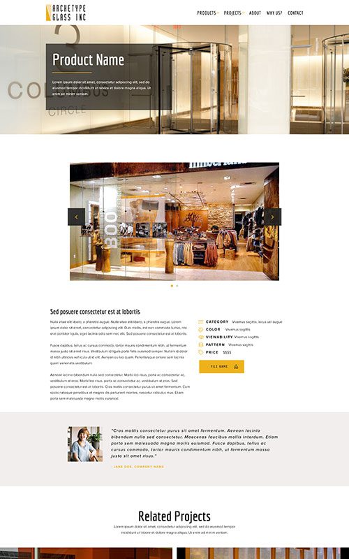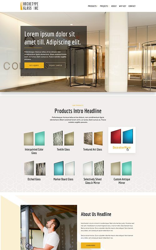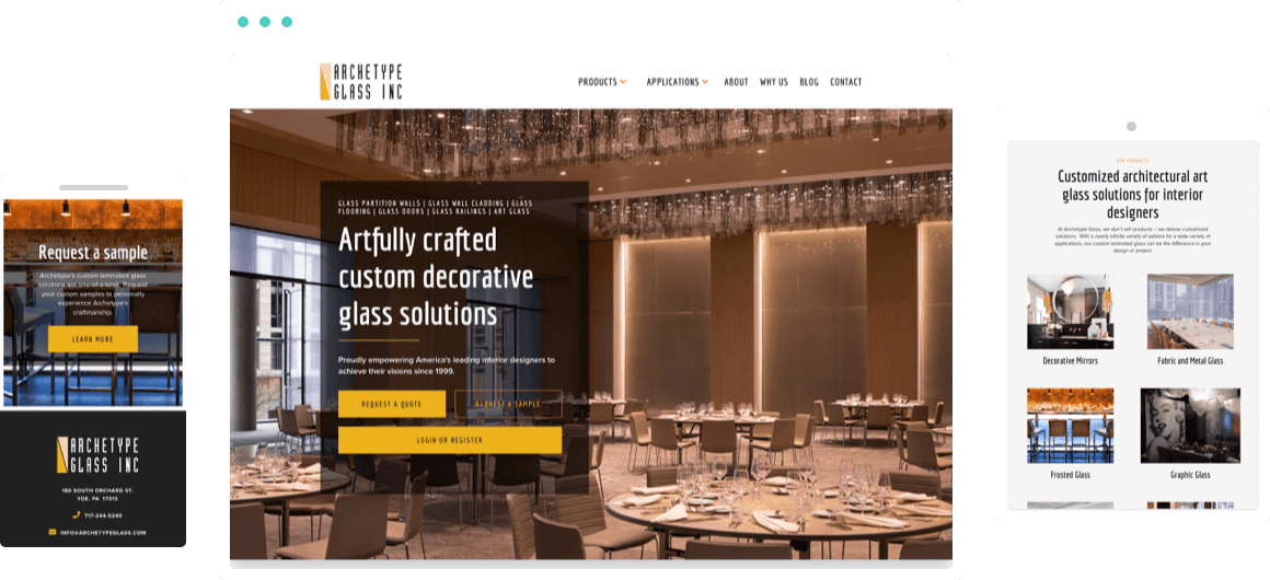 Archetype’s golden branding didn’t stand out on their old site, and we had a great opportunity to bring it to the forefront of the new design. Many of their glass solutions have subtle textures, and we were able to bring the same quality to the site in the backgrounds, offset by the use of black for an elite look and feel.
