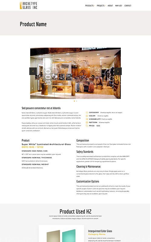 The new Archetype Glass website is a powerful visual testament to their capabilities. It looks classy and is highly functional – just like their products. Their new product catalogue has three distinctly tiered views, with unique content filtered for the public, general contractors, and architects. In the first month after launch the site saw exceptionally strong user engagement, particularly from search engine visitors.