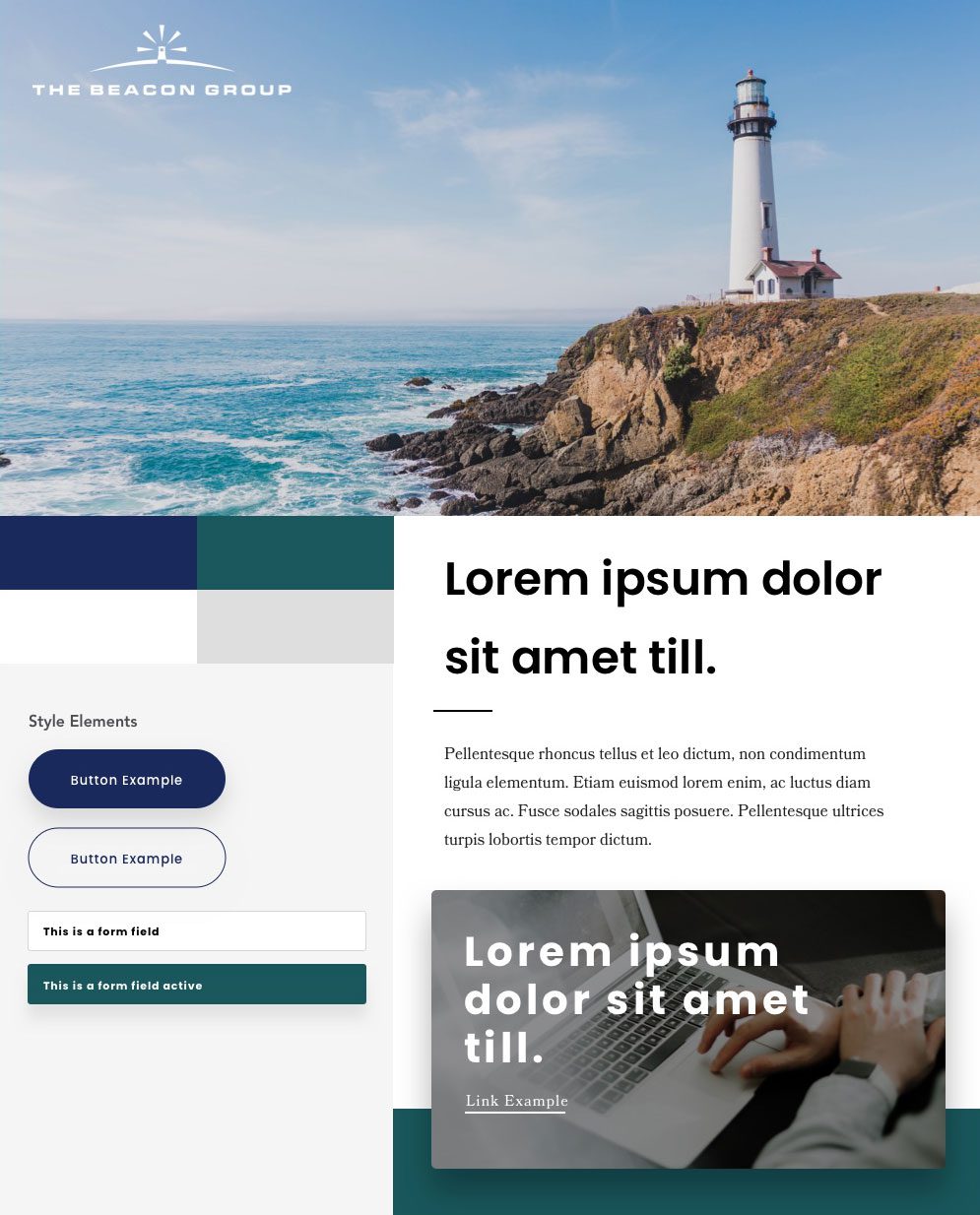 Pulling from the iconic imagery of the Beacon Group’s logo, the new banner images showcase stable lighthouses amongst turbulent surroundings. Clear iconography in a pop-out menu guides site visitors to desired service categories, while muted logo overlays subtly carry the lighthouse imagery across the page.