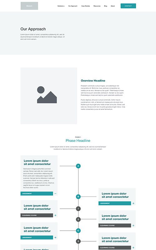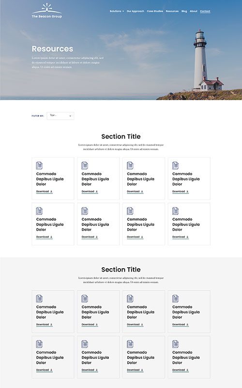 This web design project included a total brand reinvention and improved content strategy. A roadmap area with clear calls to action at each step showcases Beacon Group’s unique approach to consulting. Intellectual property and content are sorted into downloadable whitepapers and blog posts categorized with industry-appropriate terminology.