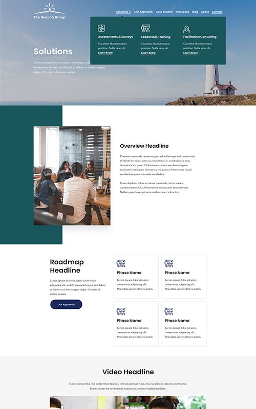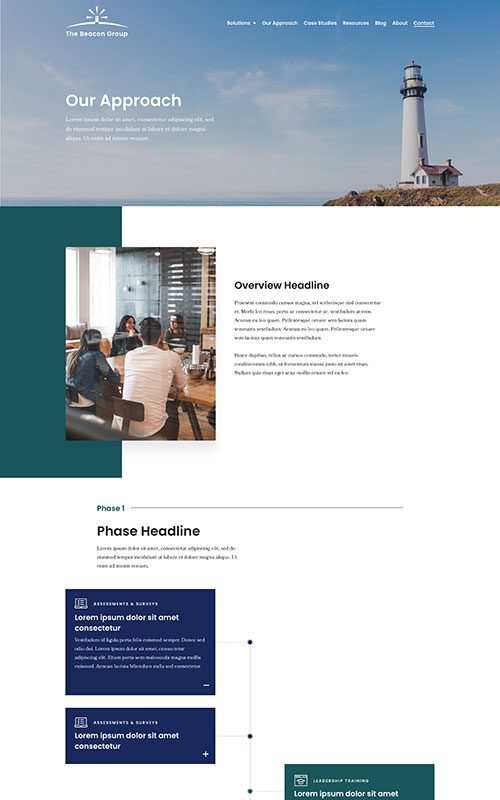 The new Beacon Group website uses a dynamic homepage to call out their services and highlight their distinctive consulting method. Roadmap items on a specialized Our Approach page are housed in neat accordion areas that include perspicuous conversion paths and credibility content. Previously scattered resources are categorized in meaningful, accessible categories, making it easier for site visitors to find what they need.