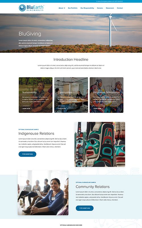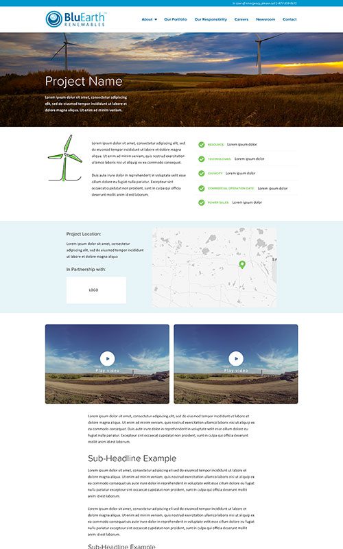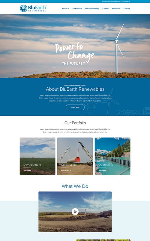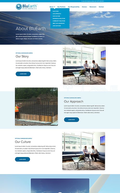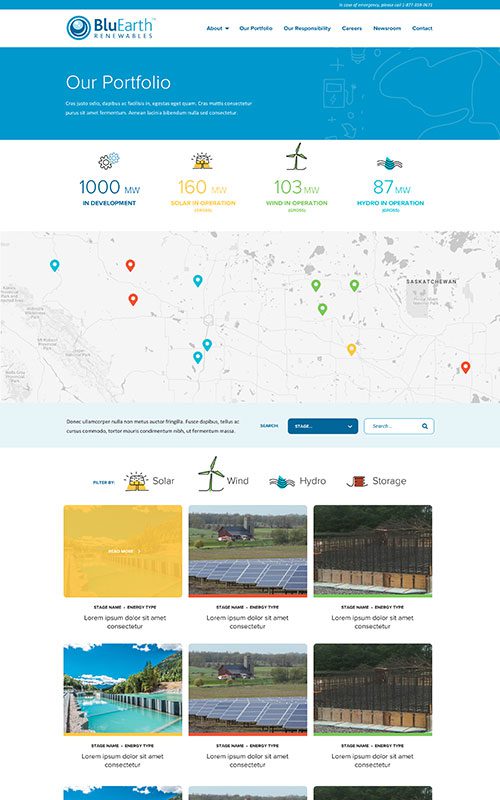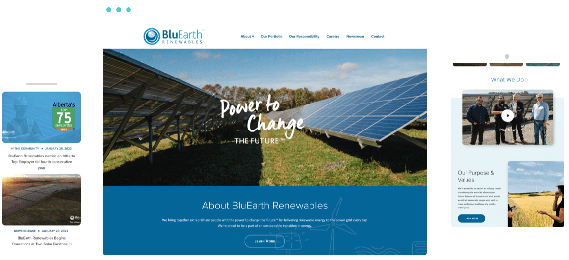 BluEarth Renewables has multiple decades of successful development, construction, and operation of large-scale projects. Their website hadn’t been redesigned in years, and it couldn’t keep up with their business growth, including expansions into energy storage and projects in the United States.