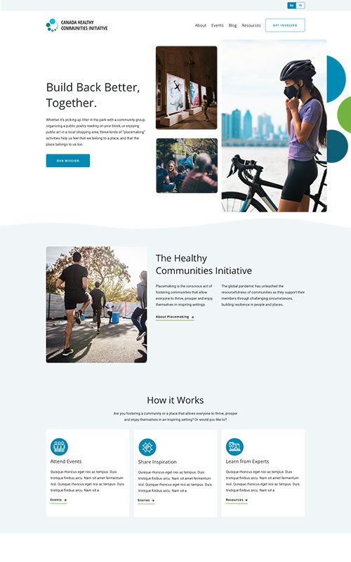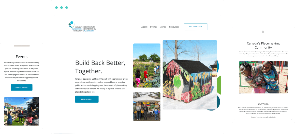 The Healthy Communities Initiative is a Government of Canada program to help rebuild public space and strengthen communities after the impact of the pandemic. Canada’s Placemaking Community (CPC) is how they hope to make it work – by helping channel government funding to the people ready to put in the work. They needed a website to connect the dots.