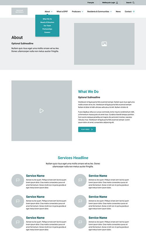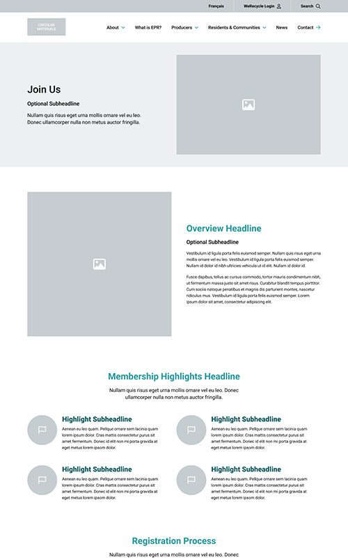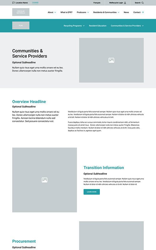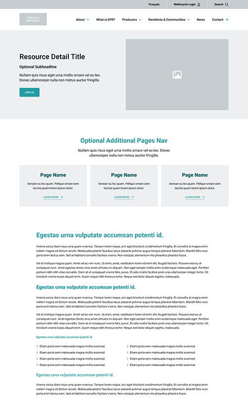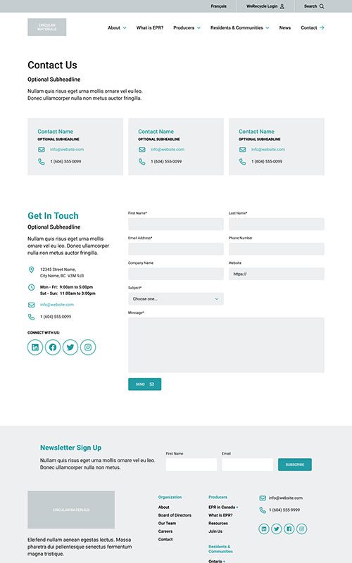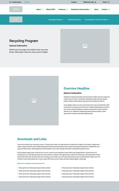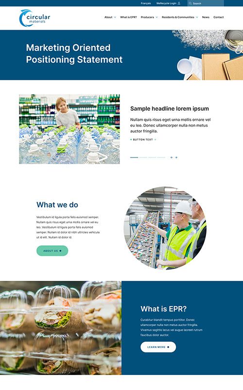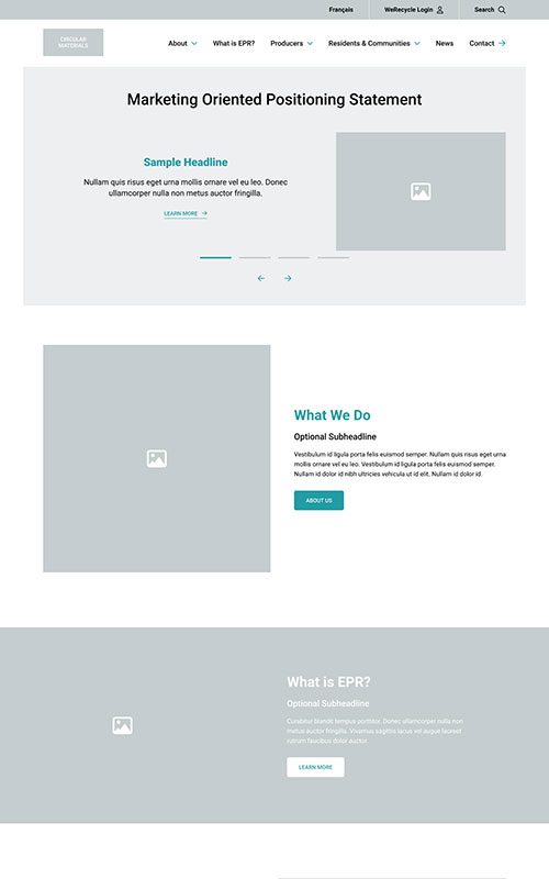 Circular Materials had strong branding in place, and a clear vision of how they wanted to apply it to their new website. Combining public needs and industry standards, styling the site involved creating page layouts and elements that would deliver a visually appealing experience while maintaining AODA Level AA compliancy. We wanted the overall look and feel to be slightly earthy and organic, while still evoking professionalism.