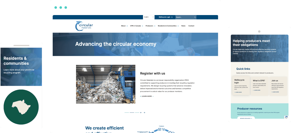 Circular Materials came to us with a fantastic challenge. They had a vast amount of website content for municipal, partner, and general public audiences. It needed to be reorganized in a way that’s both easy to browse and tailored to a user’s location. And they needed a full website redesign and build on a tight turnaround.