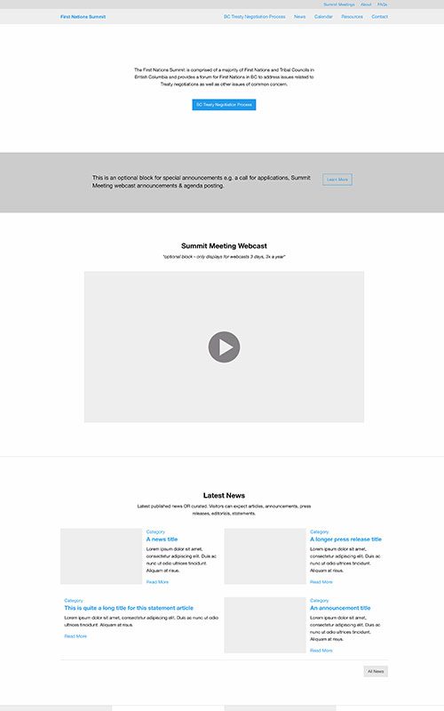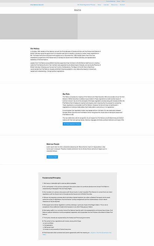When the First Nations Summit first approached us, they were struggling to communicate and disseminate information effectively through their website. On the backend, their website was extremely difficult to update, making it impossible to respond in real time to current events and new developments. It was also difficult for users to navigate the wealth of information available on the site.