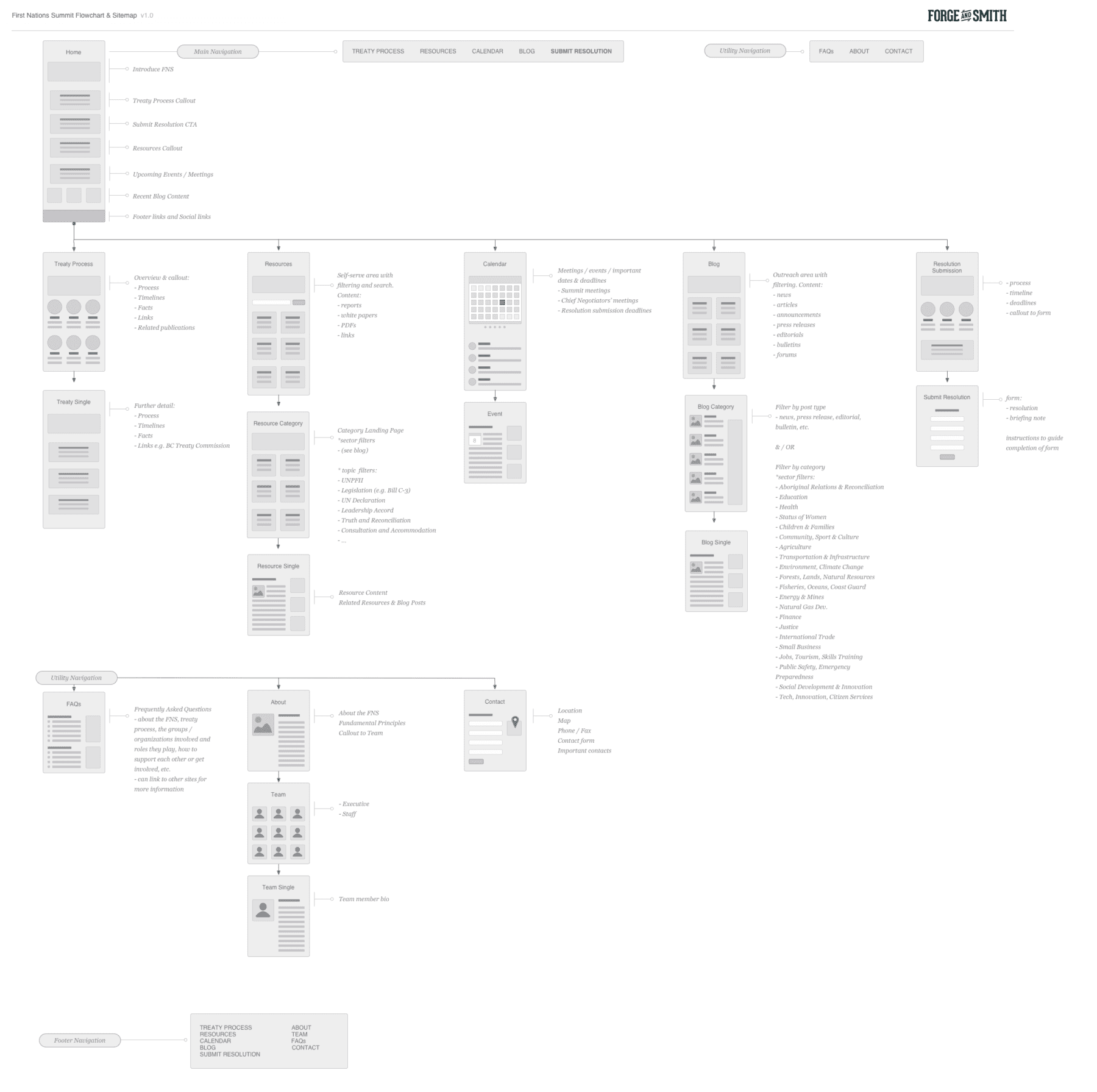 Applying the bulk of our focus to information architecture, we worked with the First Nations Summit to design a site that made the BC treaty process more accessible through user-friendly navigation of information, tools, and resources, as well as a WordPress set up that was easy for website administrators to update quickly.