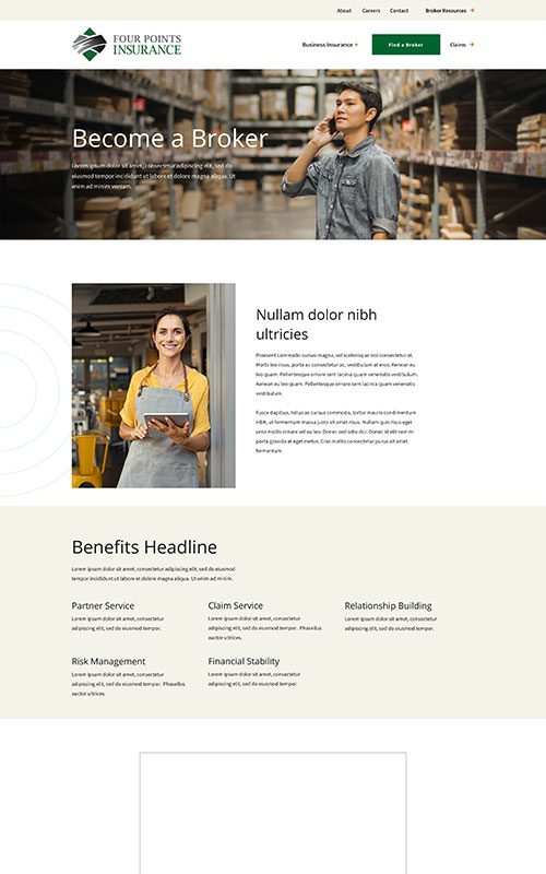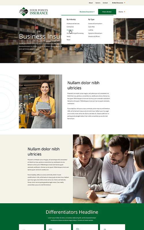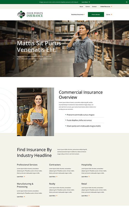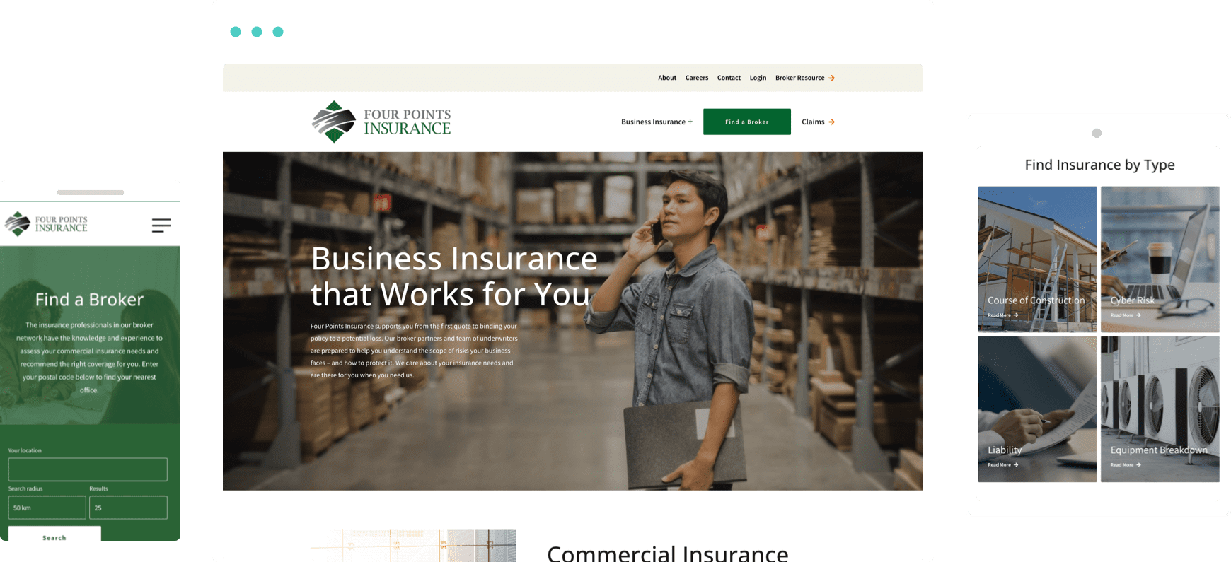 Four Points Insurance was launched to offer a variety of commercial insurance options with a focus on small and medium businesses. A brand new site was needed to showcase the suite of commercial insurance offerings, while maintaining the parent company’s reputation for stability and forward thinking.