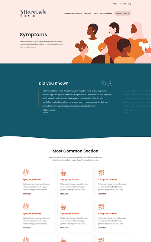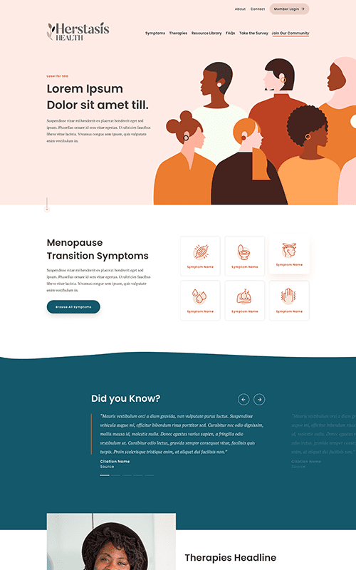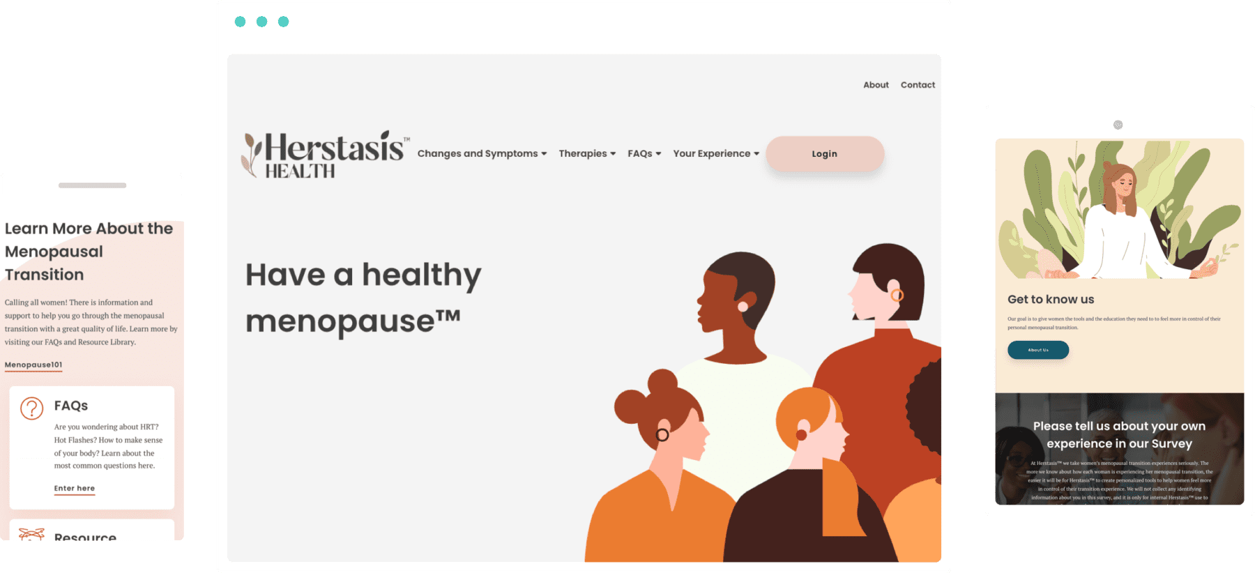 Herstasis™ came in with strong visual branding that was a lot of fun to work with. The site needed to feel inclusive, and evoke a fine balance of scientific fact and gentleness. We worked with their team to develop the right combination of illustrations, photos, icons, and typography to get their personality across.
