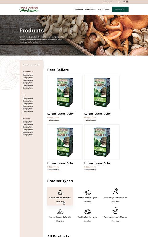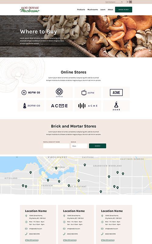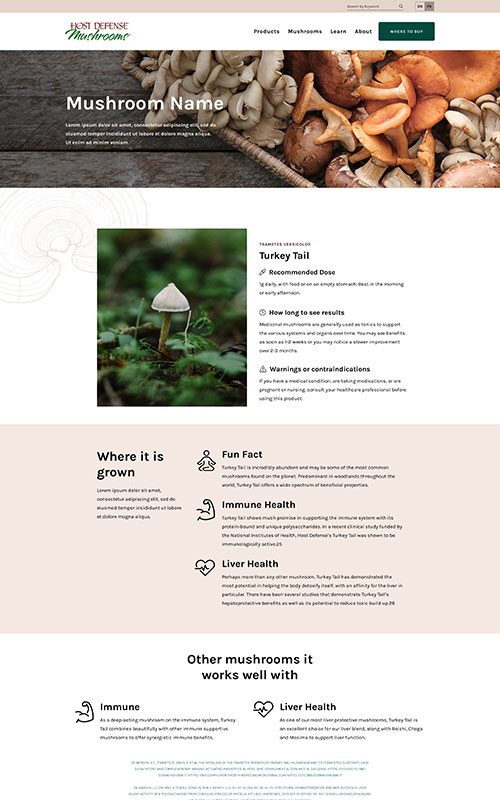 Although it needed to respect the US site’s branding and style, there was a great opportunity to create an improved user experience. Our goal was to craft a website that served as both a shoppable product catalogue and a resource for mushroom education.