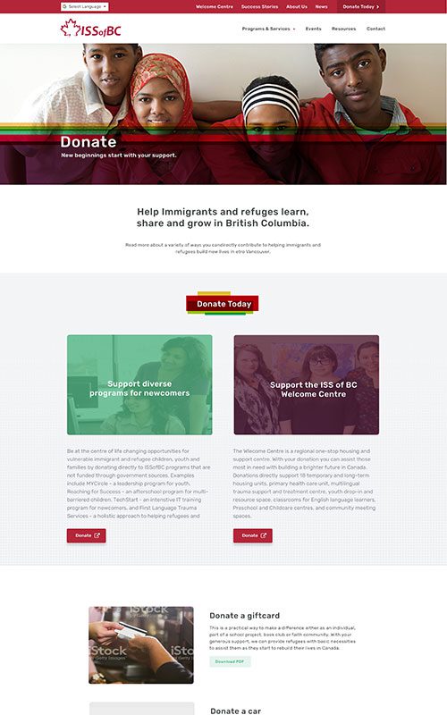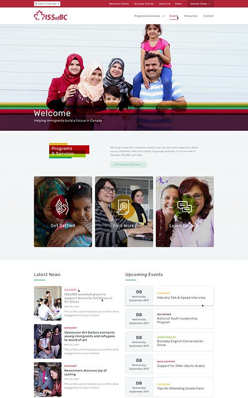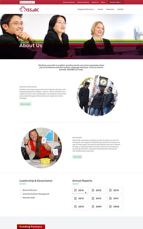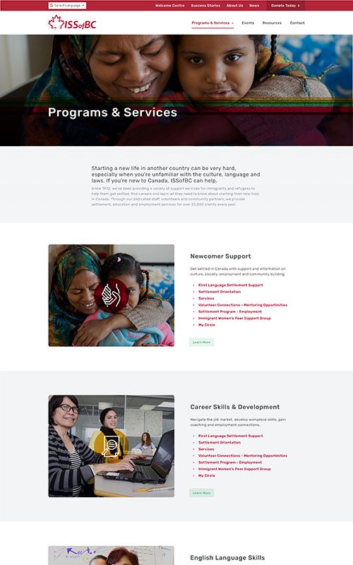 ISSofBC has a fantastic reputation for helping all kinds of newcomers to Canada with their services. We have worked with them on not only their main site (three times in 10 years), but also on five projects for their sub-organizations and several years of SEO support.