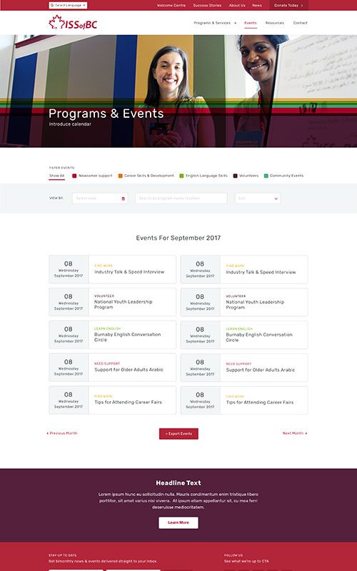 The latest redesign of the ISSofBC website is a polished, welcoming user experience, with clear paths to find crucial resources and services. Whether the visitor is looking for settlement services, job search help, or to make a donation, the new site structure and navigation make it smooth and seamless. And now that it’s built on our site builder, Refoundry, it’s significantly easier for their team to update as programs and services change.