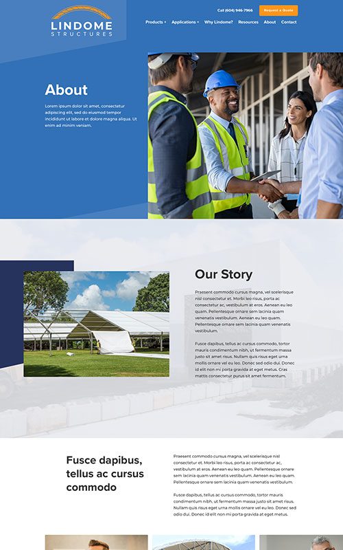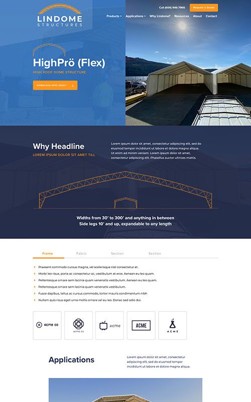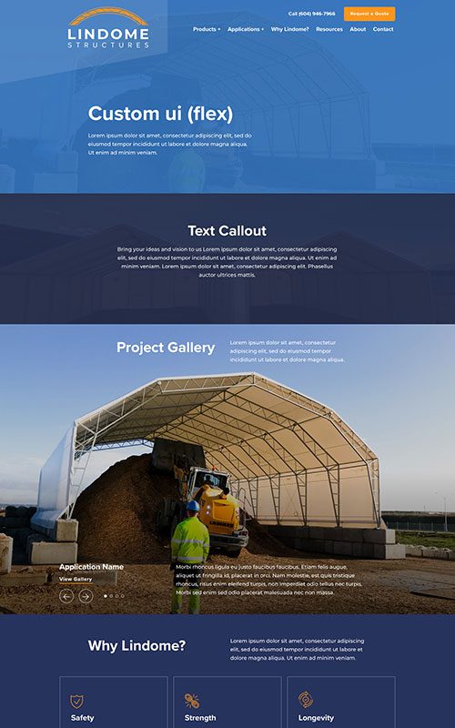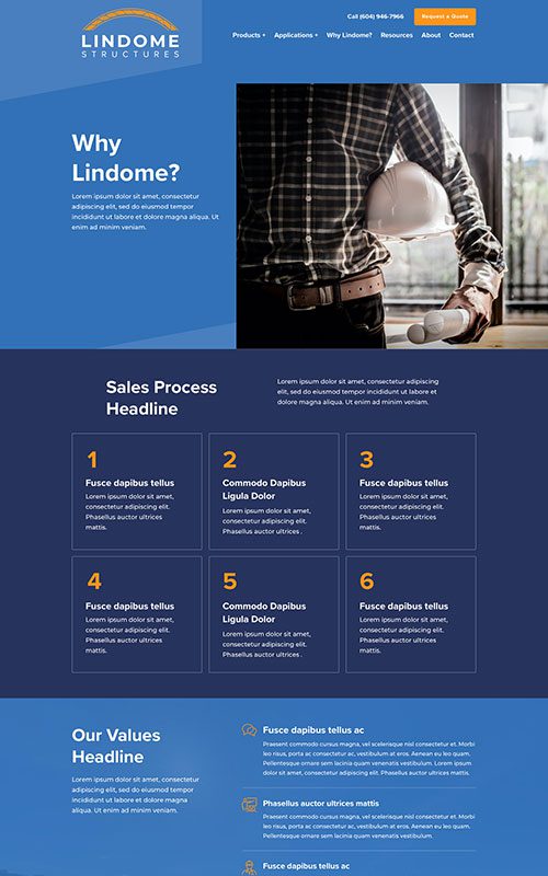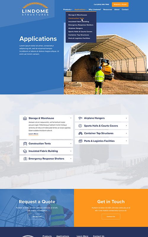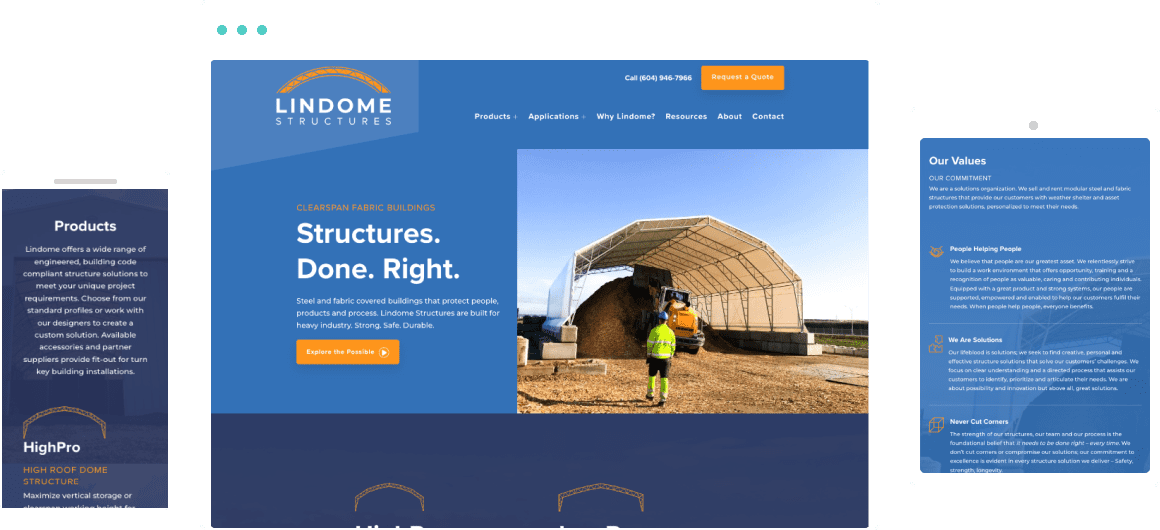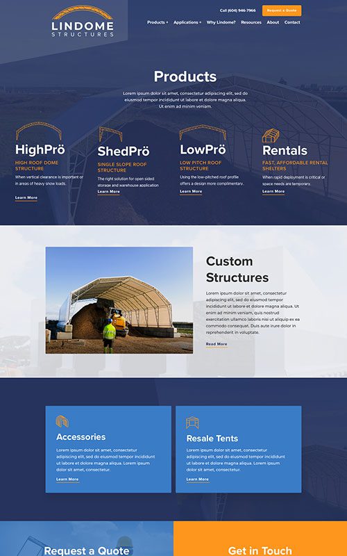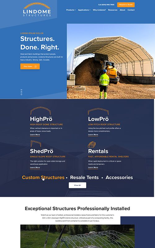 Lindome has a long-standing reputation in BC for their quality structures used in everything from forestry and mining to transport, aeronautics, farming, and sports. Their old website made it difficult to explore their full product offering, so it wasn’t pulling its weight in lead generation.