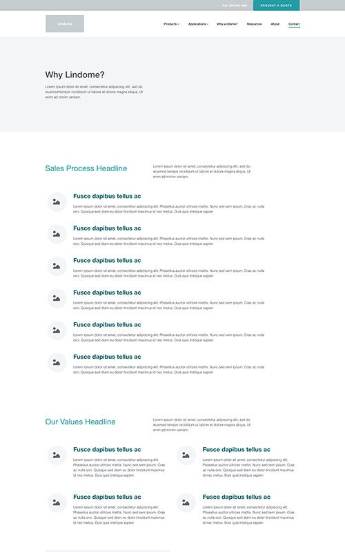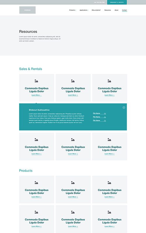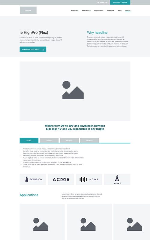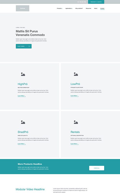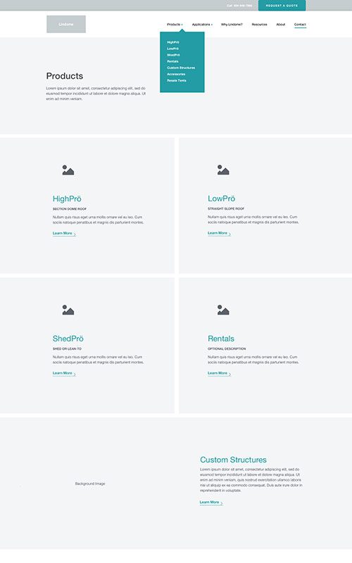 Lindome’s branding is well-established, so what we wanted to do with the new site was bring out their story of a successful, multi-generational company through a much more modern, professional look and feel. Lindome had all-new photography, so we went with a bold visual design focused around photos of the products in real life applications. Dome photos behind dark overlays make a striking, geometric background that feels industrial and on-brand.