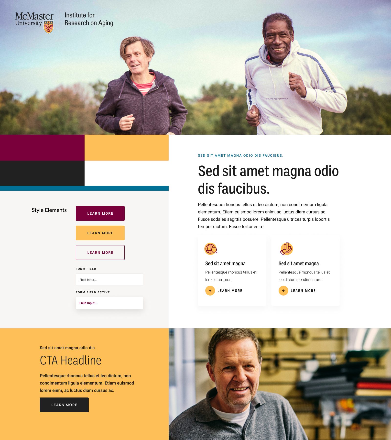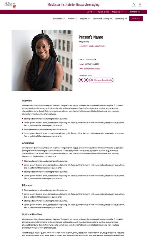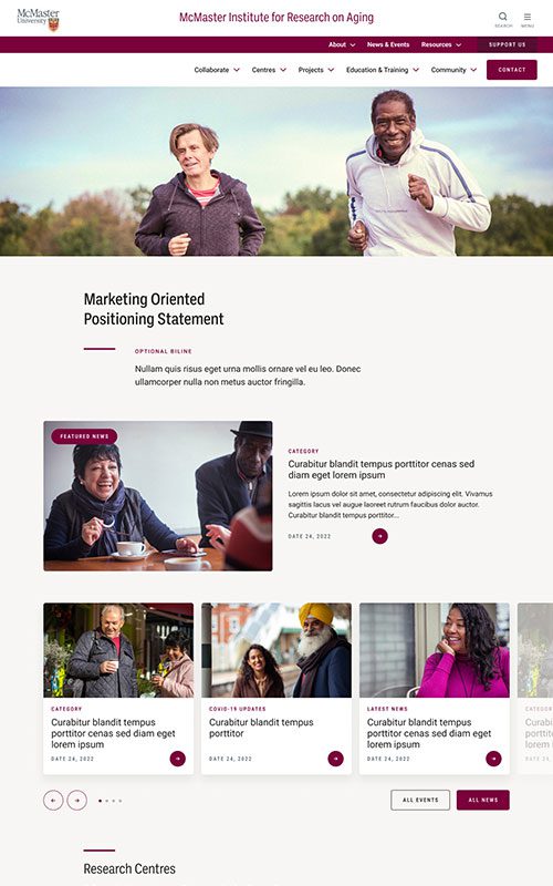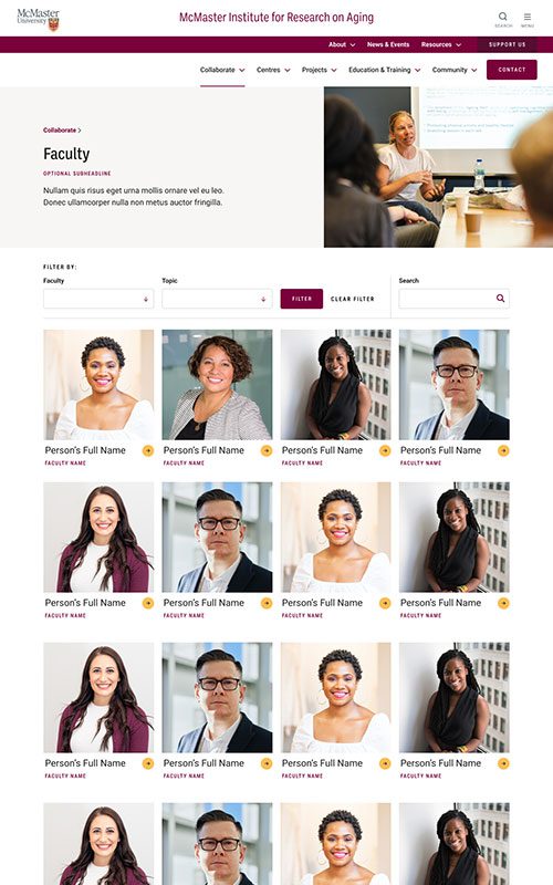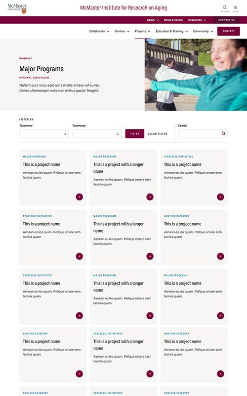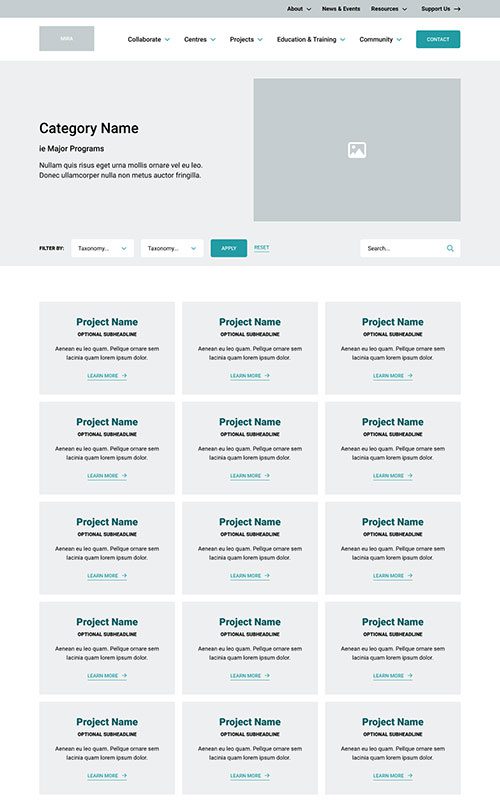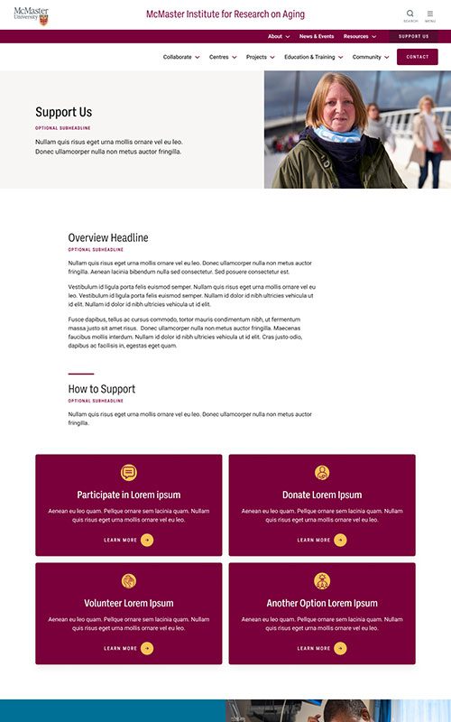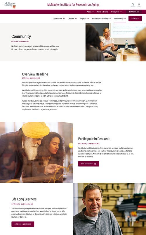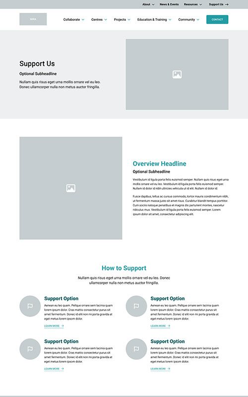 The new MIRA site needed to maintain their existing branding, to remain unified with the main McMaster University site. We made sure to match the parent site’s spacious layouts and bold use of photography. We also worked with their palette to add some fun colour blocks into the page designs, so the site has just a hint of its own unique feel.