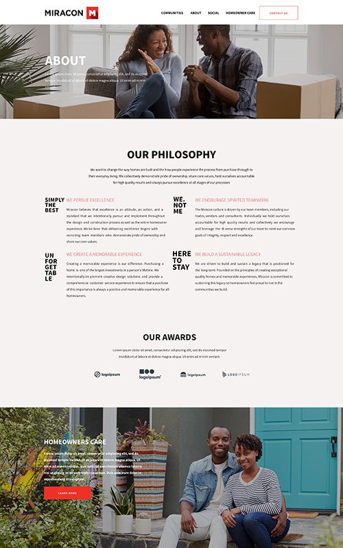 The new Miracon site is a great piece of visual storytelling. From their primary pages to individual projects, their content evokes a desirable feeling of community. We built a reusable multisite framework that can be easily repurposed for each new construction project they develop. And through monthly SEO and content work including analytics reports and topic recommendations, we’ve helped them skyrocket their digital strategy!