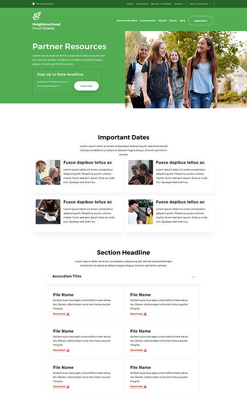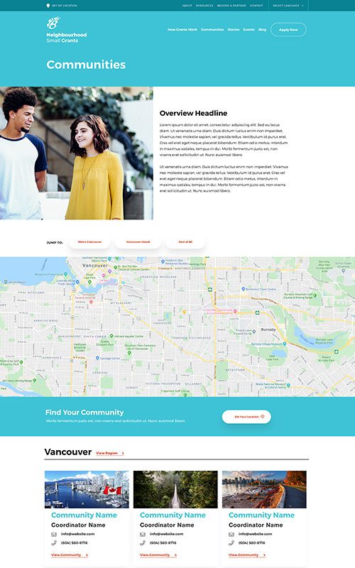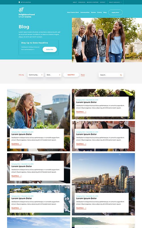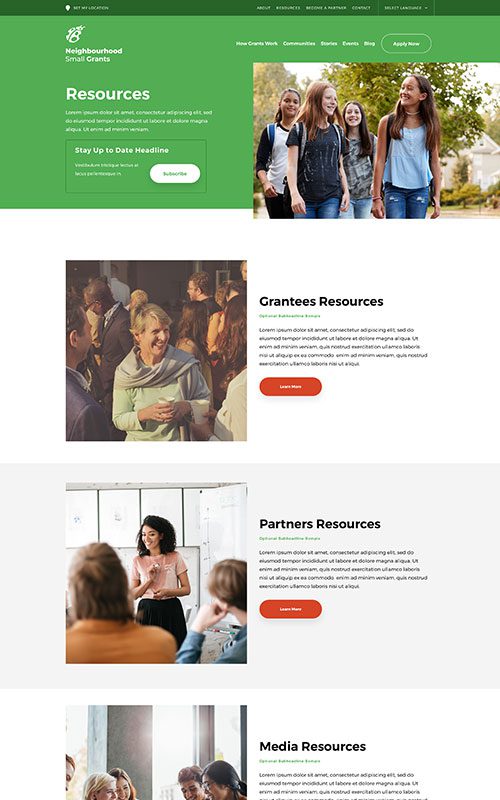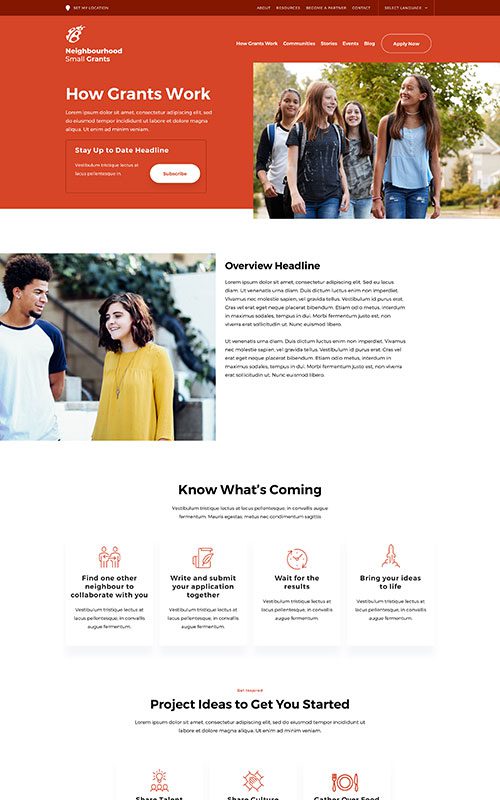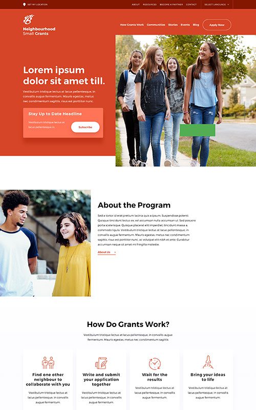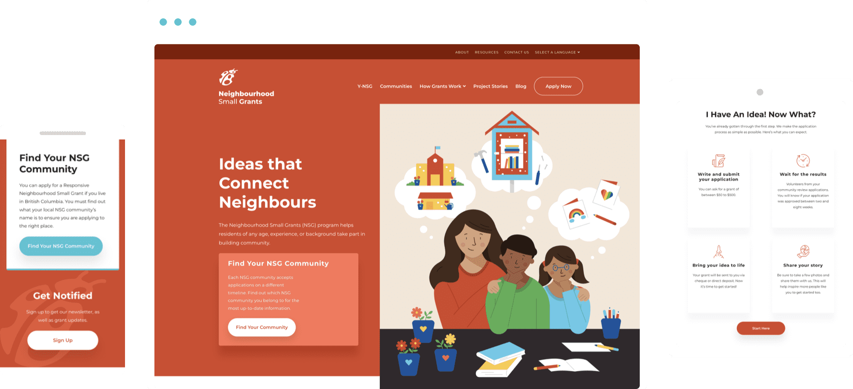 Neighbourhood Small Grants (NSG) went through an exciting rebrand that included a fresh brand strategy, logo, and digital personality. This gave their new web design and development project some big, exciting goals. The new multilingual website needed to capture their new tone and storytelling. And functionally, it was all about content mapping.