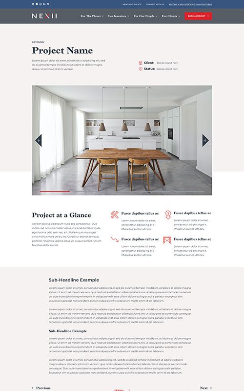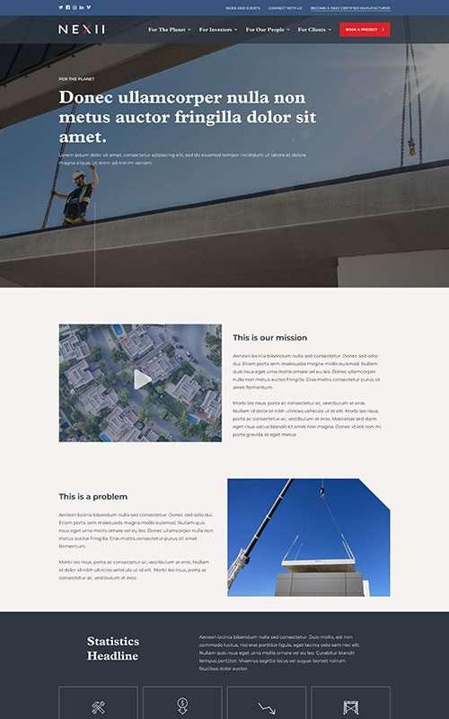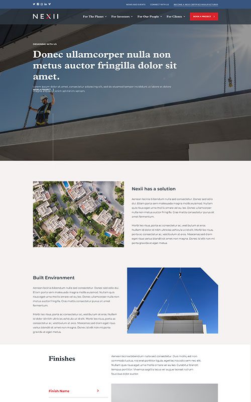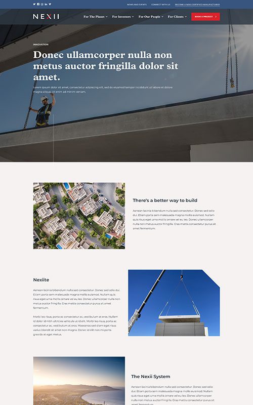 The goal of this website redesign was content-driven. It was all about shifting the look, feel, and tone of the site to be focused on Nexii’s impact on the construction industry, and the environment. This meant restructuring the site to include deeper content around their projects and process.