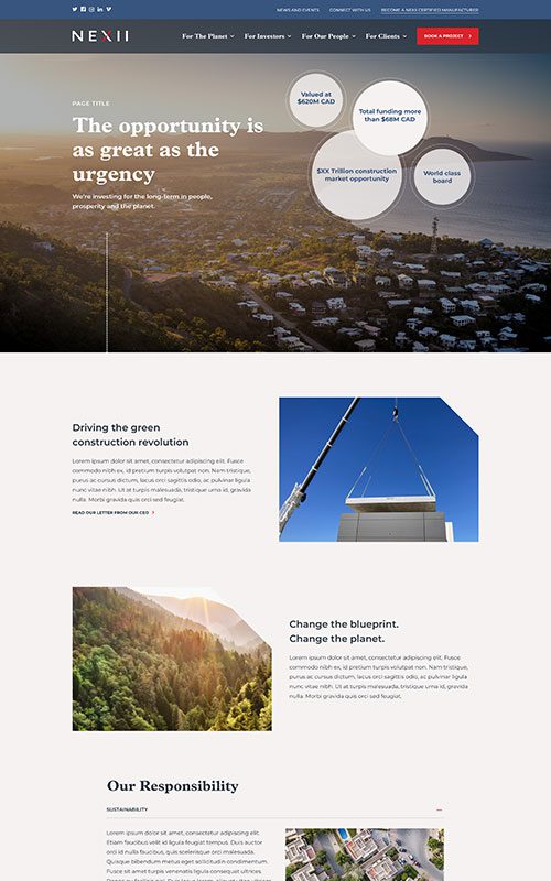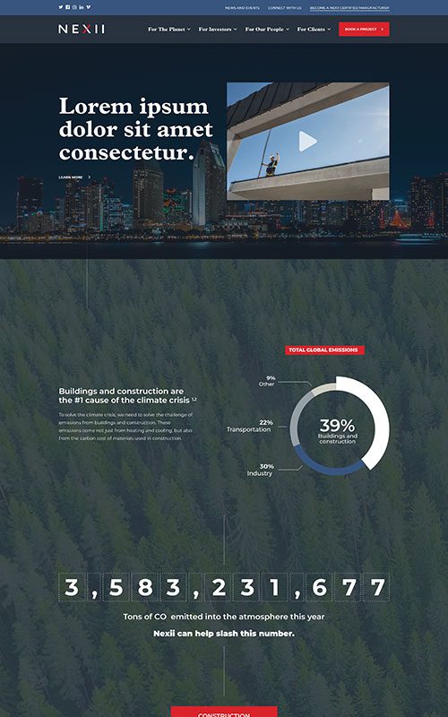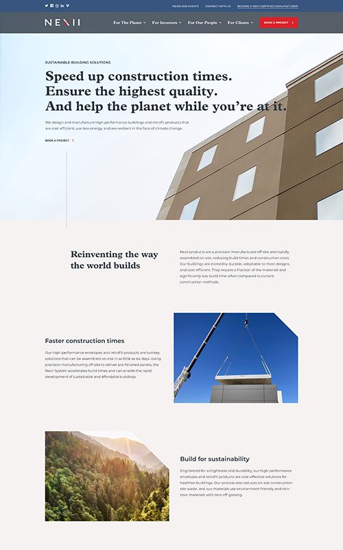 The new Nexii website tells the complete story of a company rooted in a passion for change. From their building solutions and case studies to their transparency around sustainability and zero-waste materials, all of their content is aligned with their mission. It’s easy for potential clients and investors to understand their brand and their purpose, and to discover the benefits of working with Nexii on a sustainable building solution.