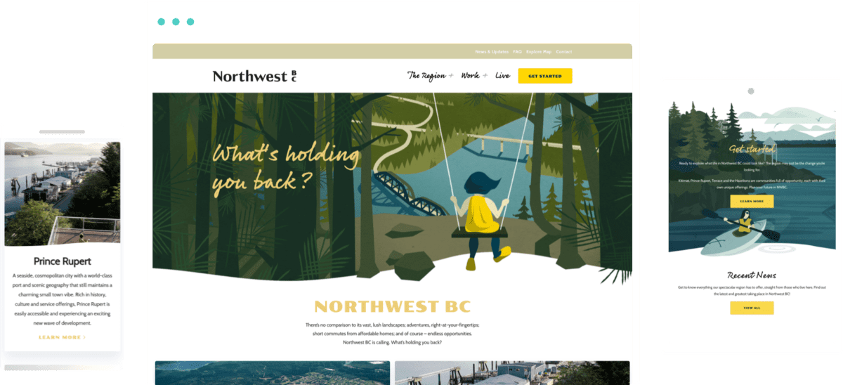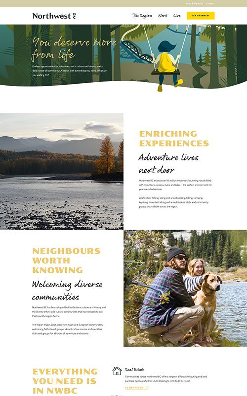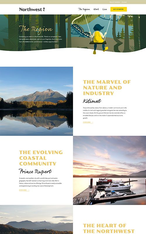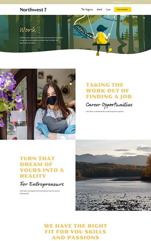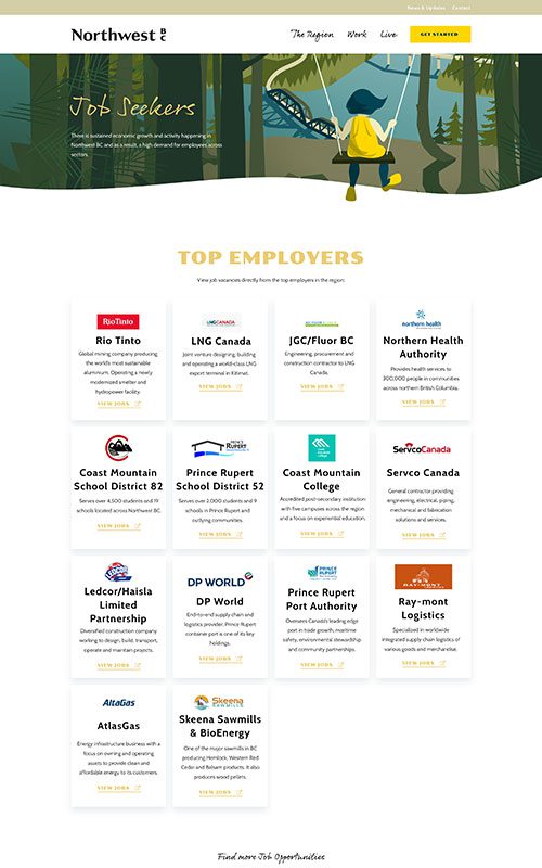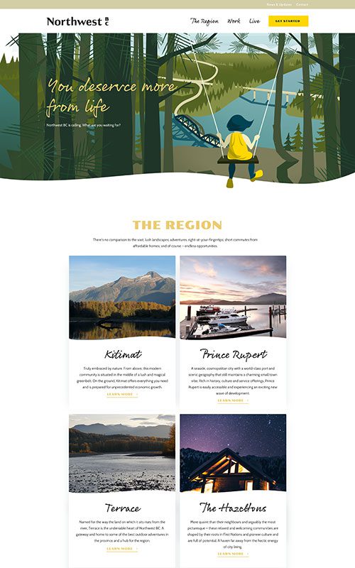 We were approached to help a group of municipalities and tourism boards launch an all-new website, to drive interest in work and life in Northwest BC. The goal was to have the site serve as a portal for employers, and both current and prospective workers and residents.