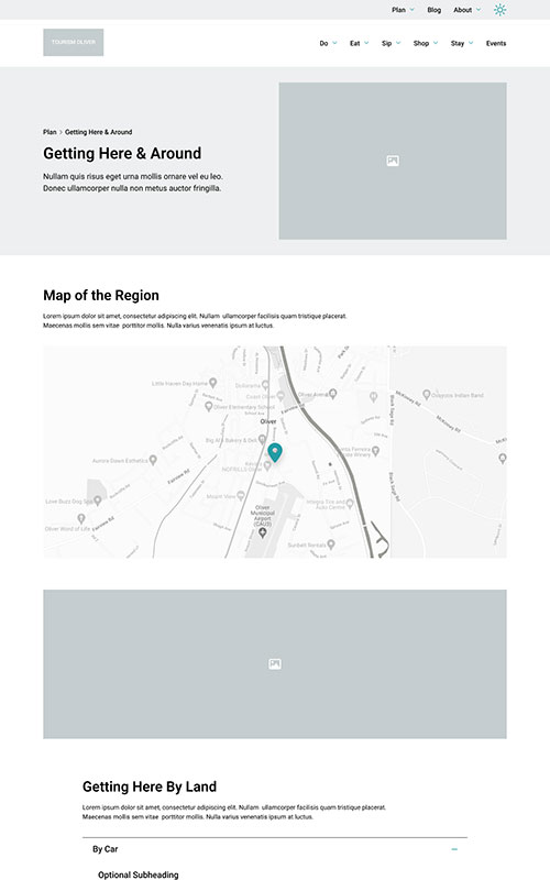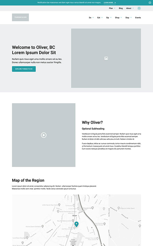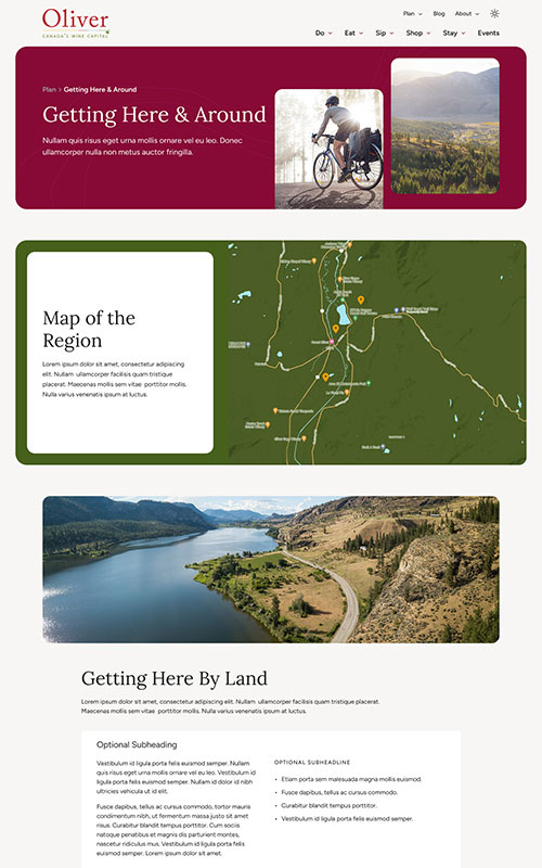 Oliver had fun branding that we brought out through more spacious page designs and rounded elements, giving each section distinct space while drawing the user’s eye through subtle background lines. We created custom maps, and a clean, vibrant design that utilizes their brand colour in a systematic way.