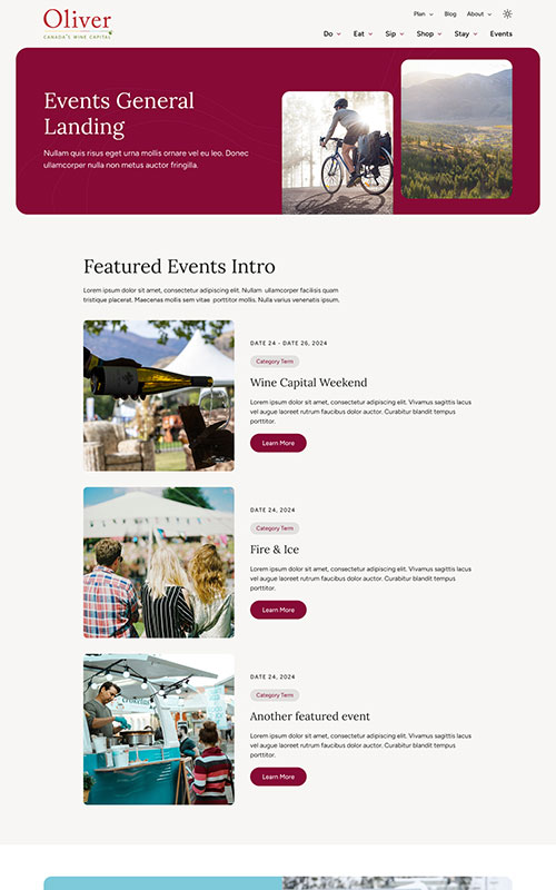 Through the information architecture and UX design stages, we focused on creating a more logical menu flow, and more content relationships to drive visitors to more business and activity pages. We kept their events prominent, while redesigning the events area to better showcase annual events.