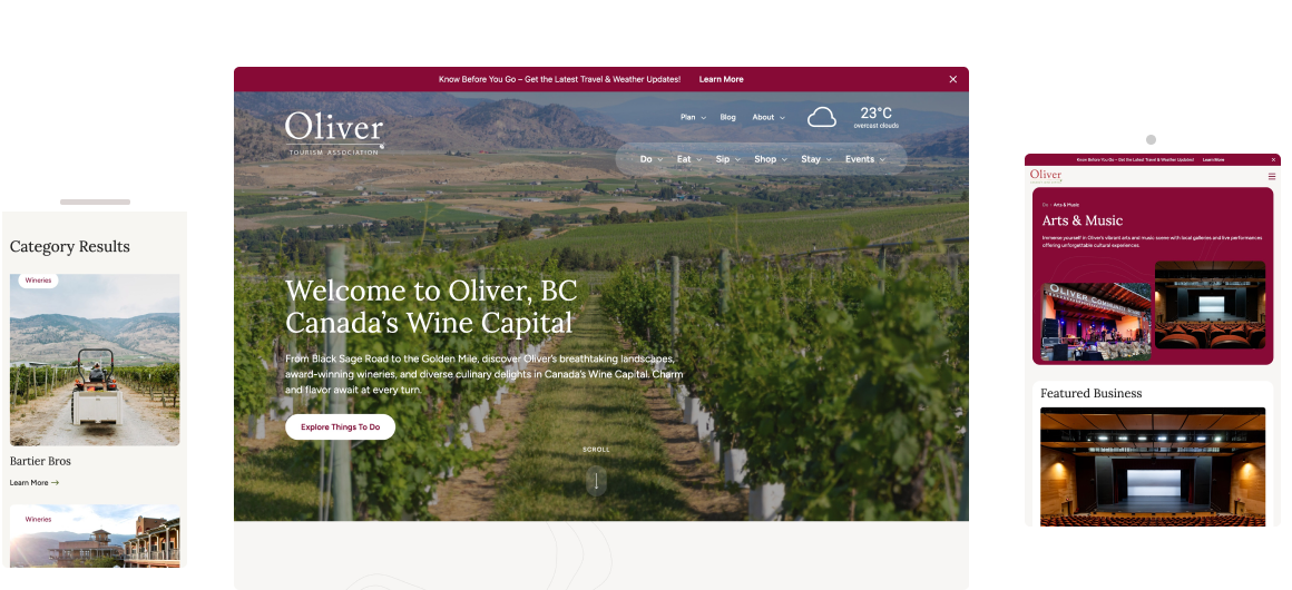 The new Oliver Tourism website is a gorgeous visual experience befitting Canada’s wine capital. It’s easy for visitors to check out all of the activities and businesses in the area, and access itineraries and regional information. The site houses everything a potential tourist could need, and most importantly, it’s easy for their team to manage businesses as their membership grows, because it’s built on our low-code site builder plugin, Refoundry.