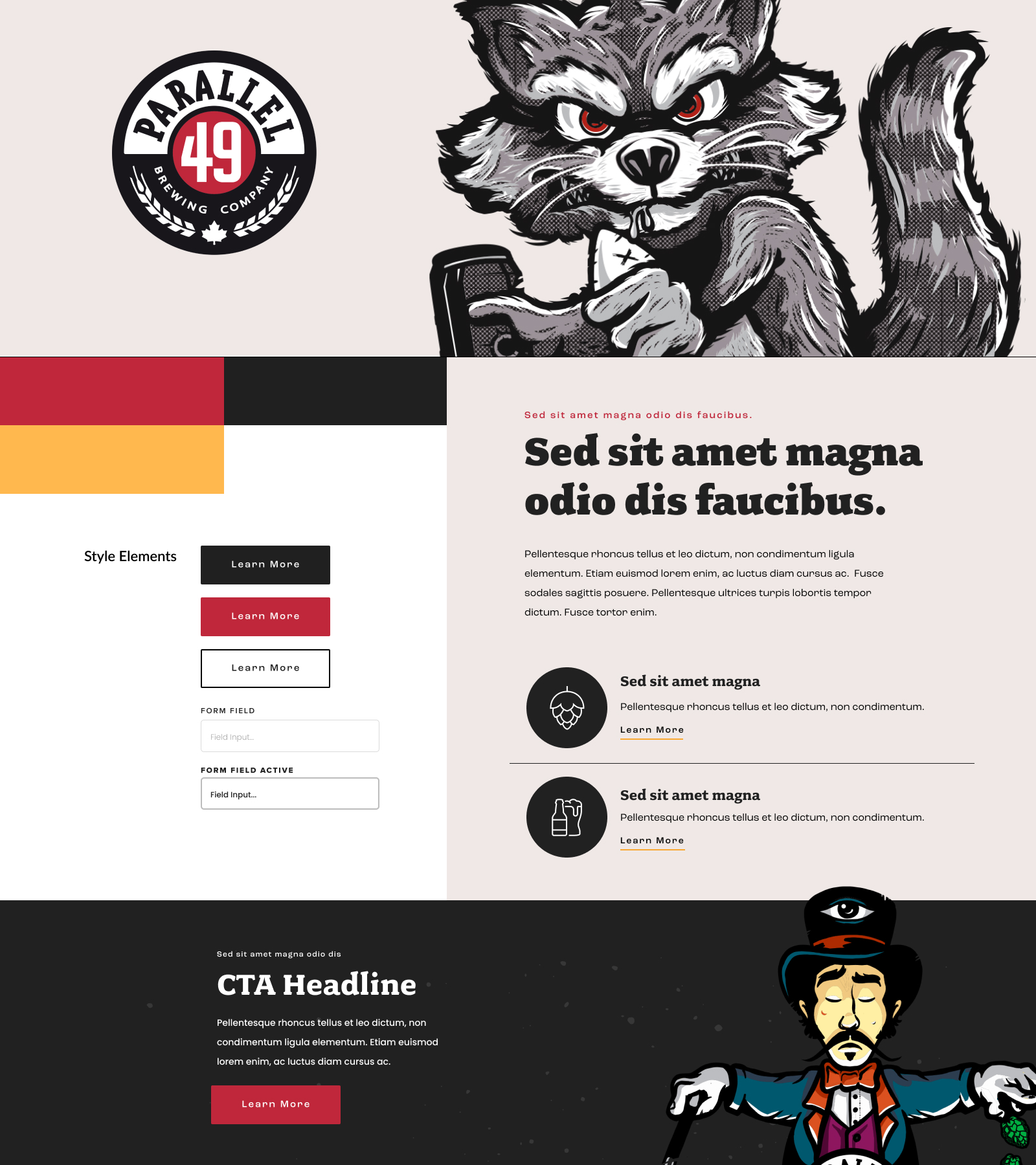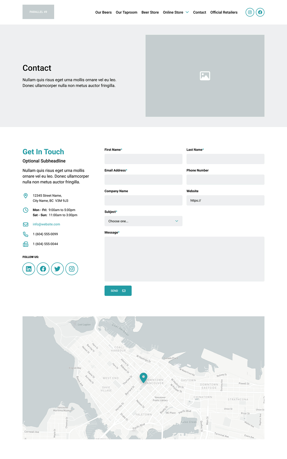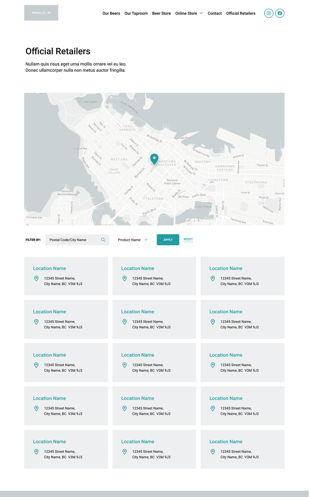 Cans of P49 beer have bold artwork that radiates an East Van vibe. We used starkly contrasting dark and light backgrounds with lots of white space, to draw a visitor’s eye to the bright colours on key content and callouts. Serifed fonts emulate their logo, tying all of the visuals together.