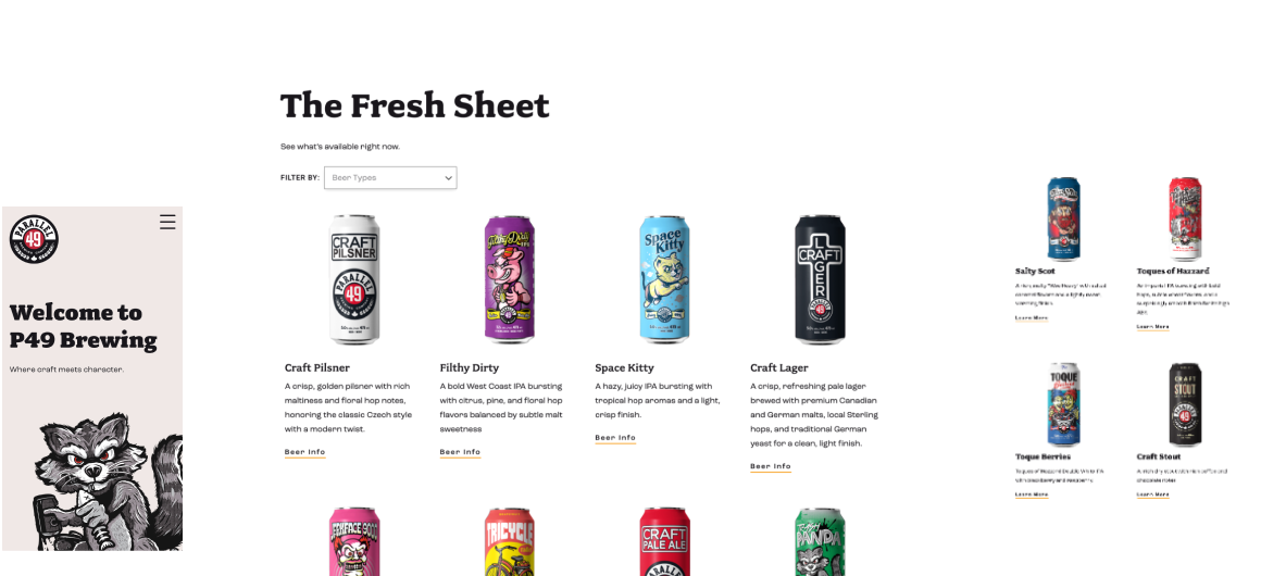 P49 is a Vancouver staple when it comes to craft beer. Their old website was tiny, and impossible for their team to update without a developer. This meant that it never showed their new and current brews.