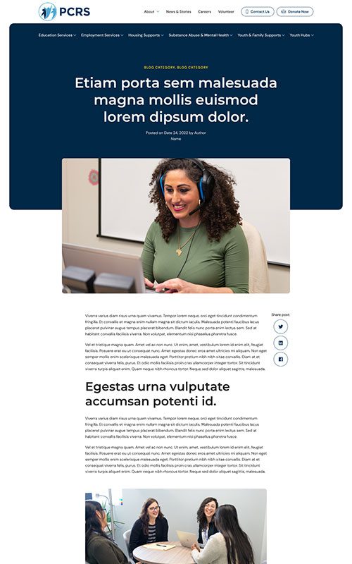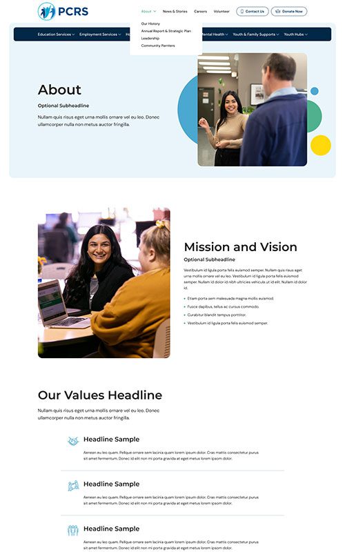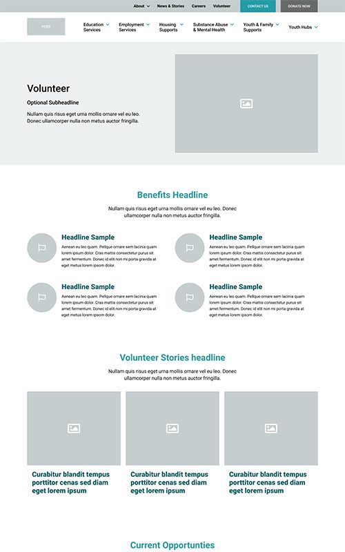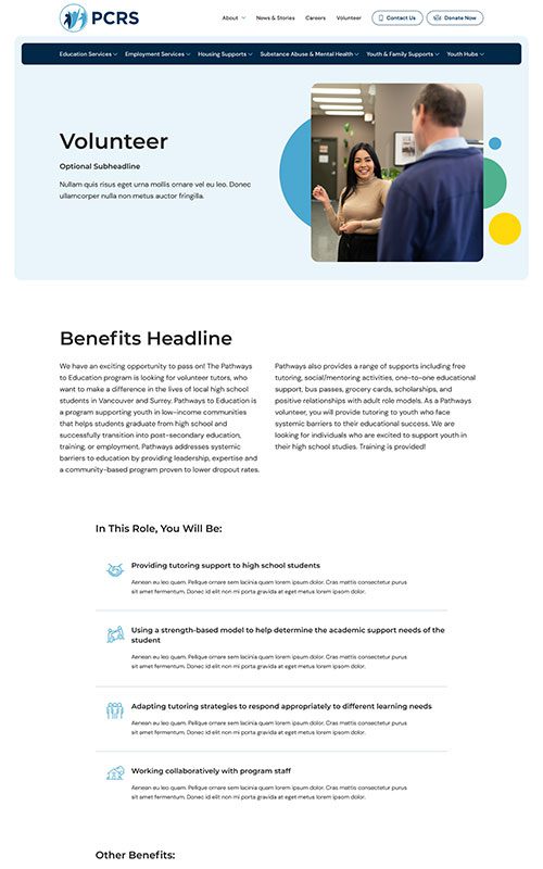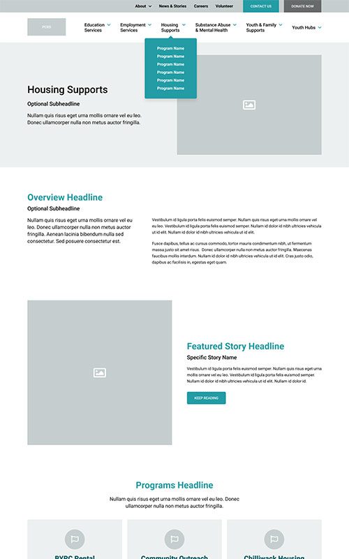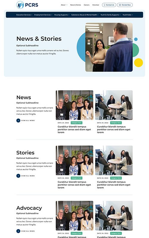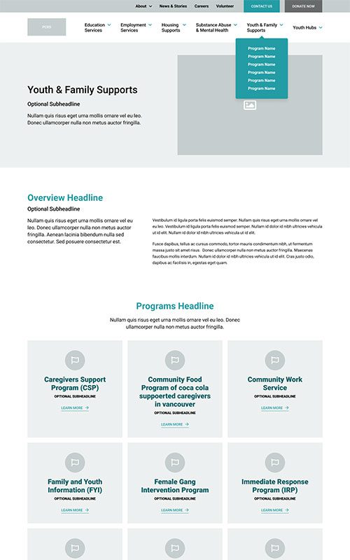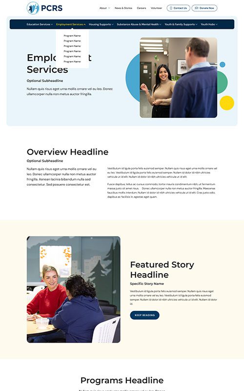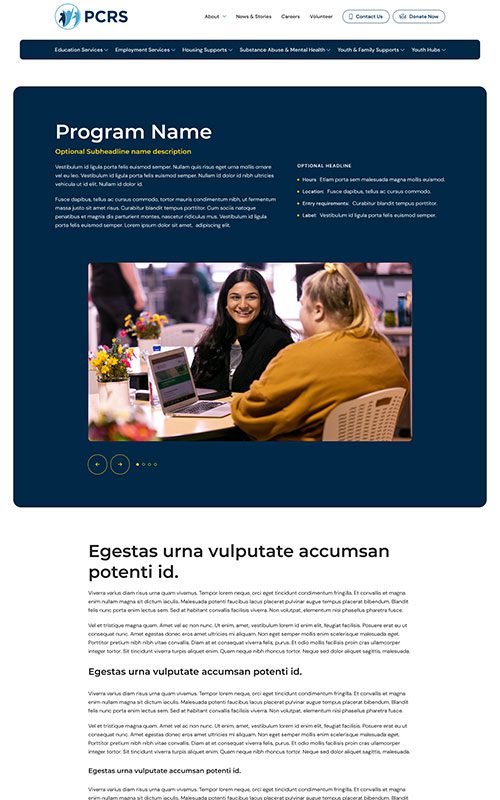 PCRS provides a wide range of essential services for communities, but their website was increasingly difficult to explore – creating a barrier between their resources and those in need. The prototype for PCRS required a clean, highly navigable site structure as well as well-designed, SEO-friendly detail pages for each individual program and service.