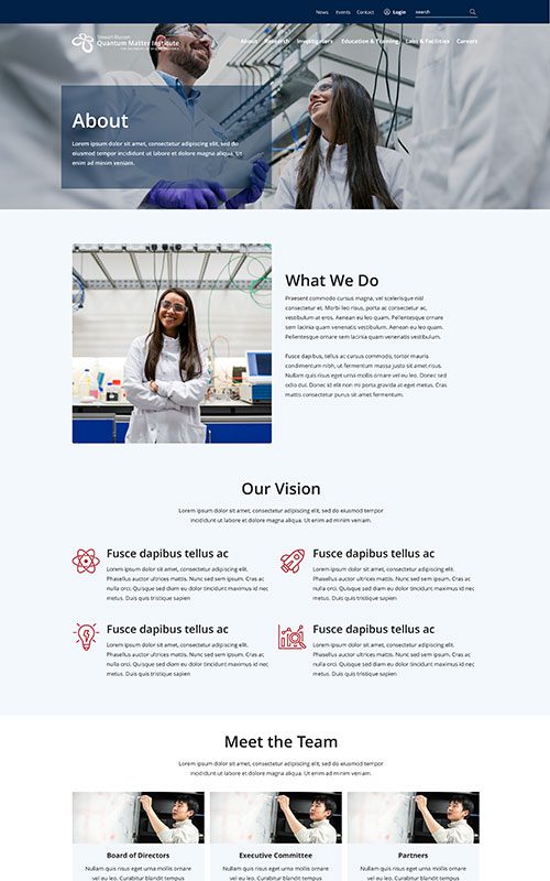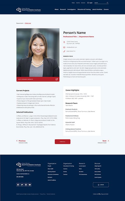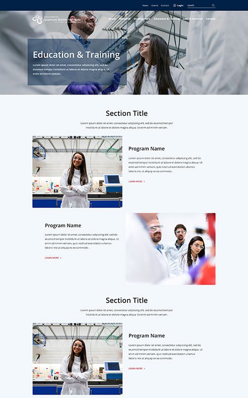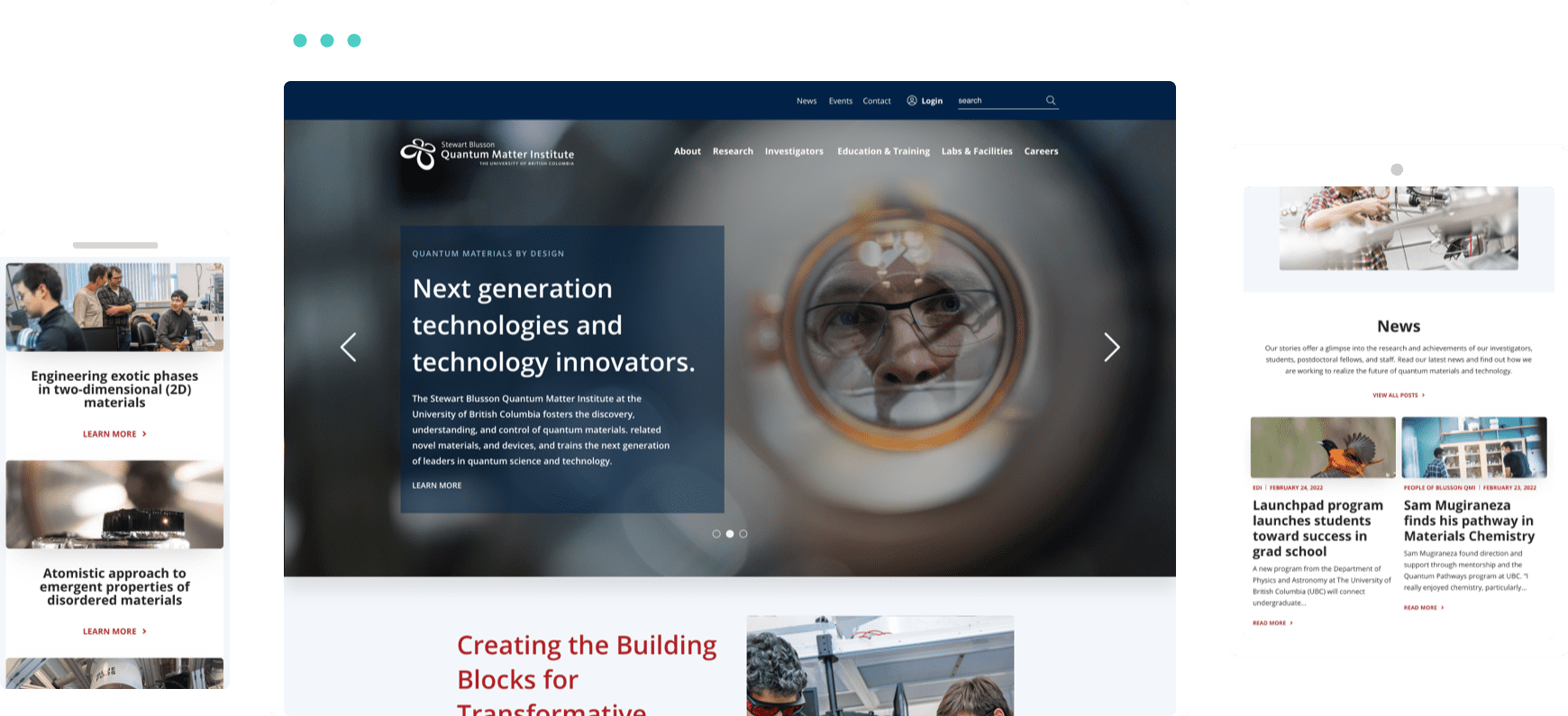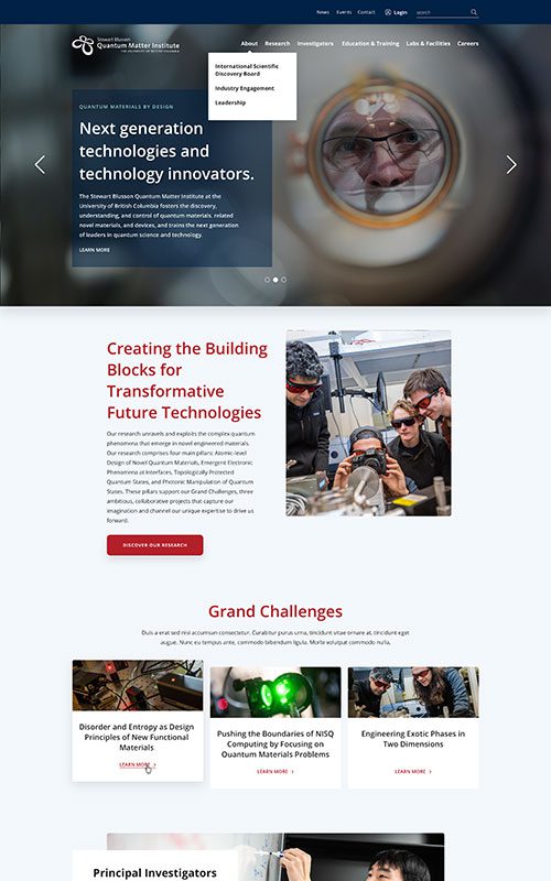 Quantum Matter Institute needed a way to showcase their research and investigators, while also highlighting the Grand Challenges that are important to their story. No small task, especially when sharing important guidance around infrastructure, training programs, and how they assist students are all added to the mix.