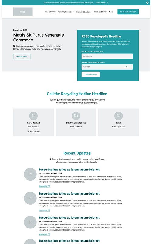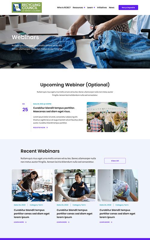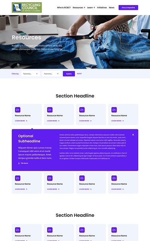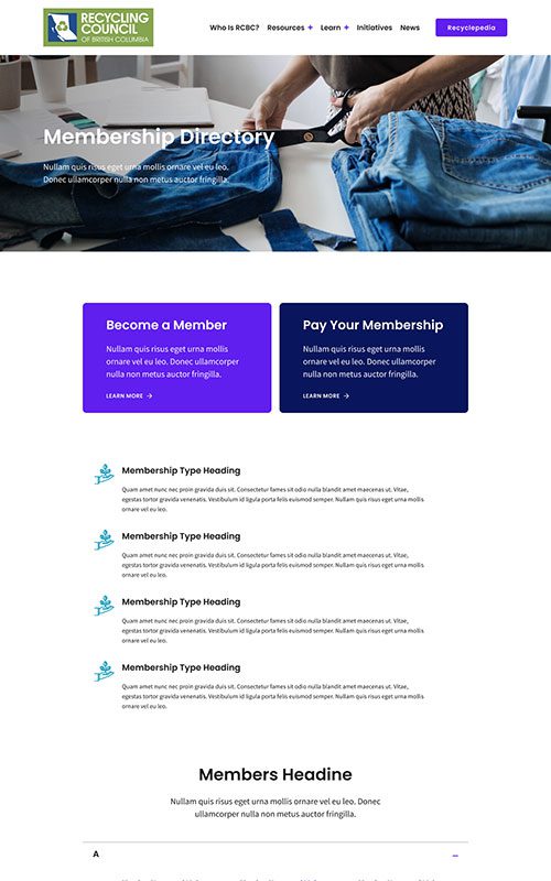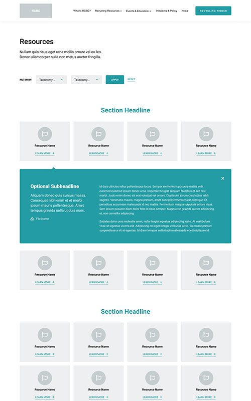 RCBC wanted to move away from the traditional blue-and-green look that was adopted by all environmental organizations at one time. We worked with their team through several different directions for the new look and feel, before settling on a palette of blues and bright purple accents. The new page designs and typography are much more modern and engaging.