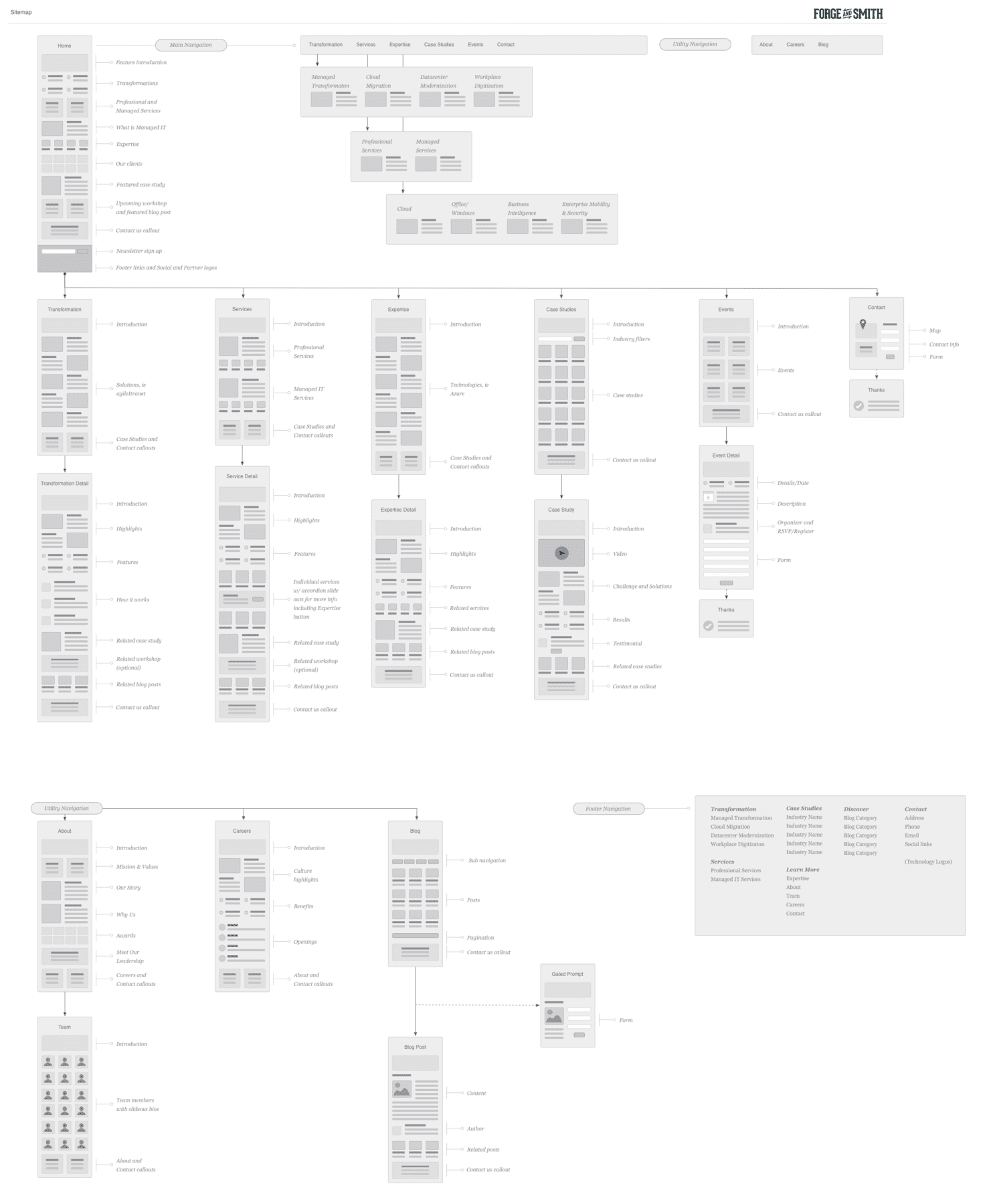 Our focus for this website redesign project was all about improving the navigation for a stronger user experience. We wanted to reduce the text-heavy main menu, boost the functionality of the footer menu, and increase the contact CTAs. At the same time, we needed to add more opportunities for lateral movement between related content, to move potential customers toward conversion.