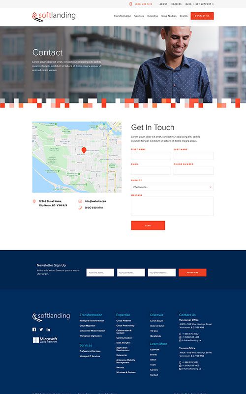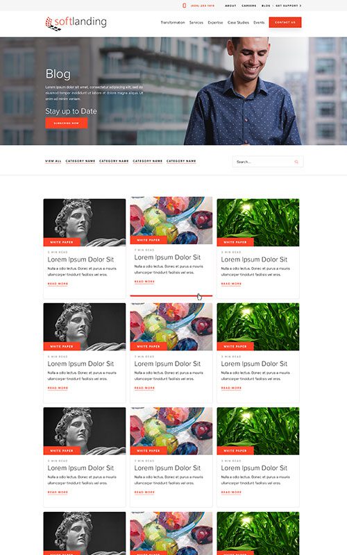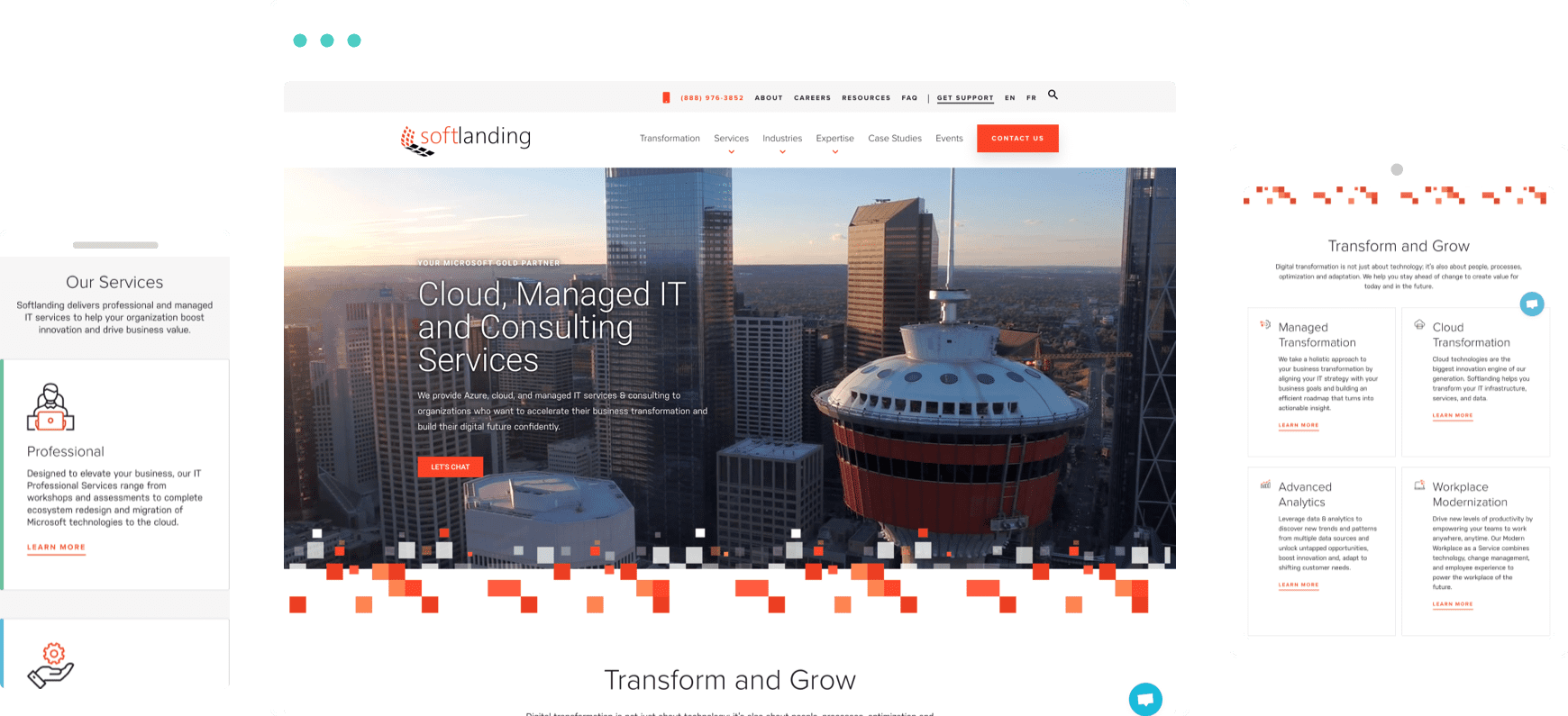 The new Softlanding website is has clear visitor paths for potential and existing customers. The main menu still helps users locate the same information, but the navigation is easier after grouping content into a cleaner architecture. Visitors who are viewing their expertise are shown related services and resources from the Softlanding blog. The blog itself, with its useful articles and whitepapers, has improved filtering for better browsing.