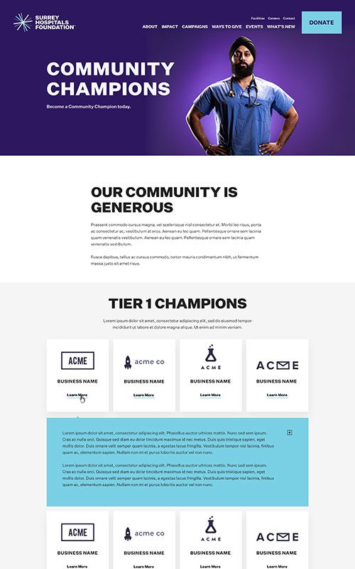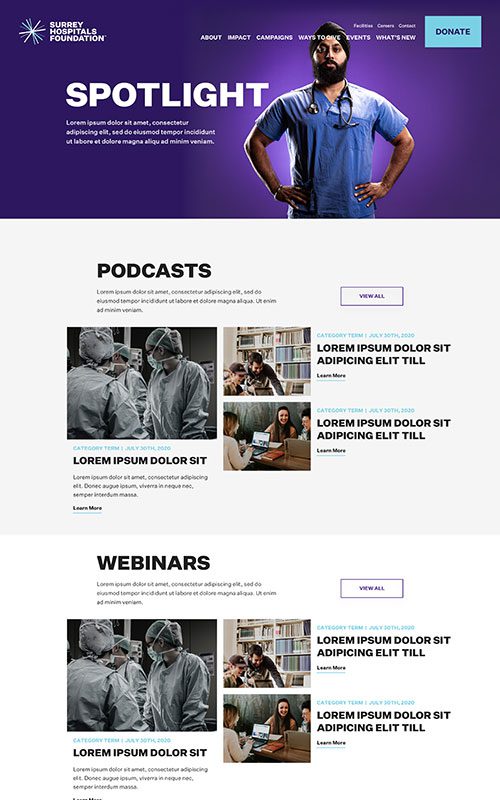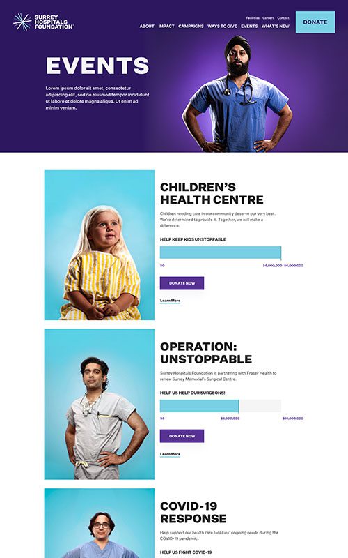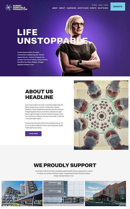 Surrey Hospitals Foundation is an integral part of their community, raising funds to support critical health care facilities and programs. They approached us about a website redesign for an exciting major rebrand.