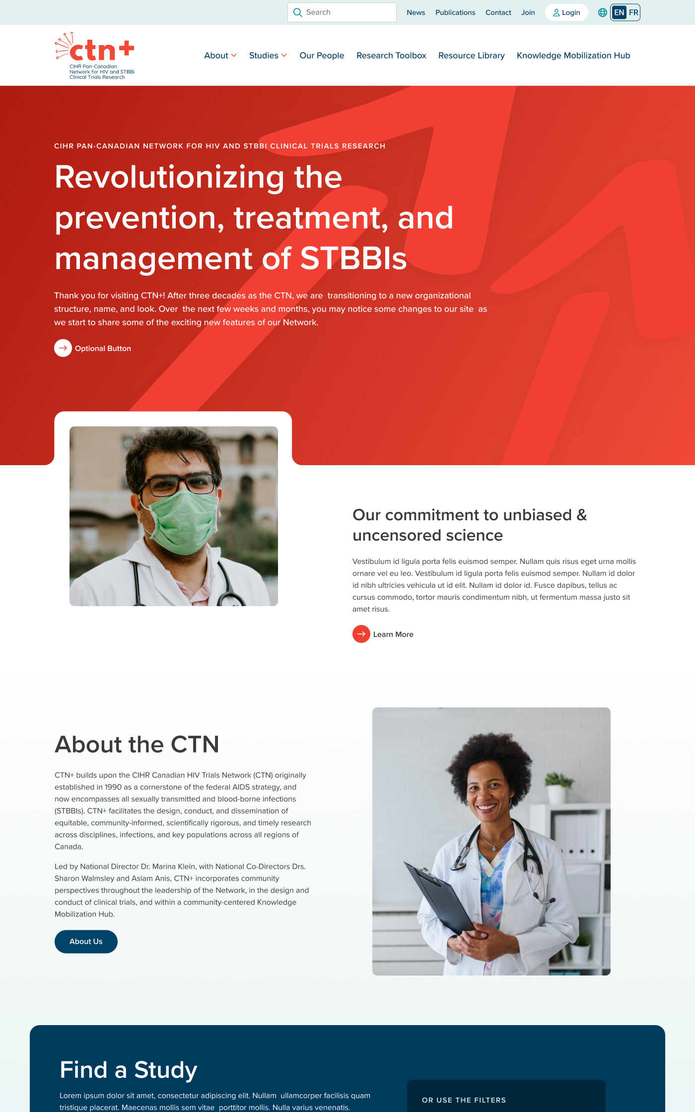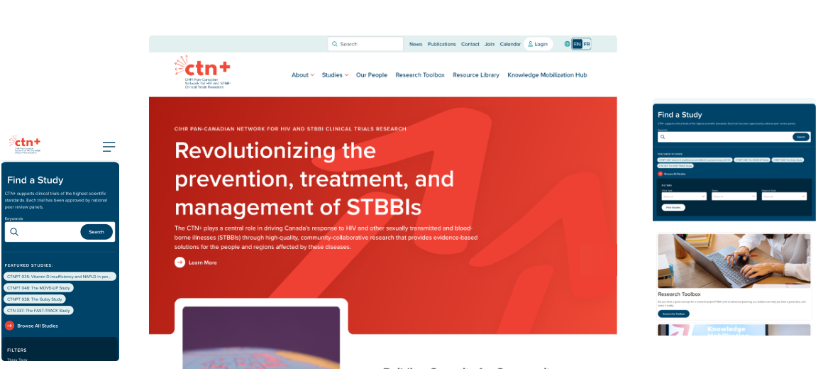 CTN+ builds upon the CIHR Canadian HIV Trials Network (CTN) originally established in 1990 as a cornerstone of the federal AIDS strategy, and now encompasses all STBBIs. With four Scientific Think Tanks and five Regional Teams, the Network facilitates and supports investigator-driven clinical trials and non-interventional research in a range of clinical areas.