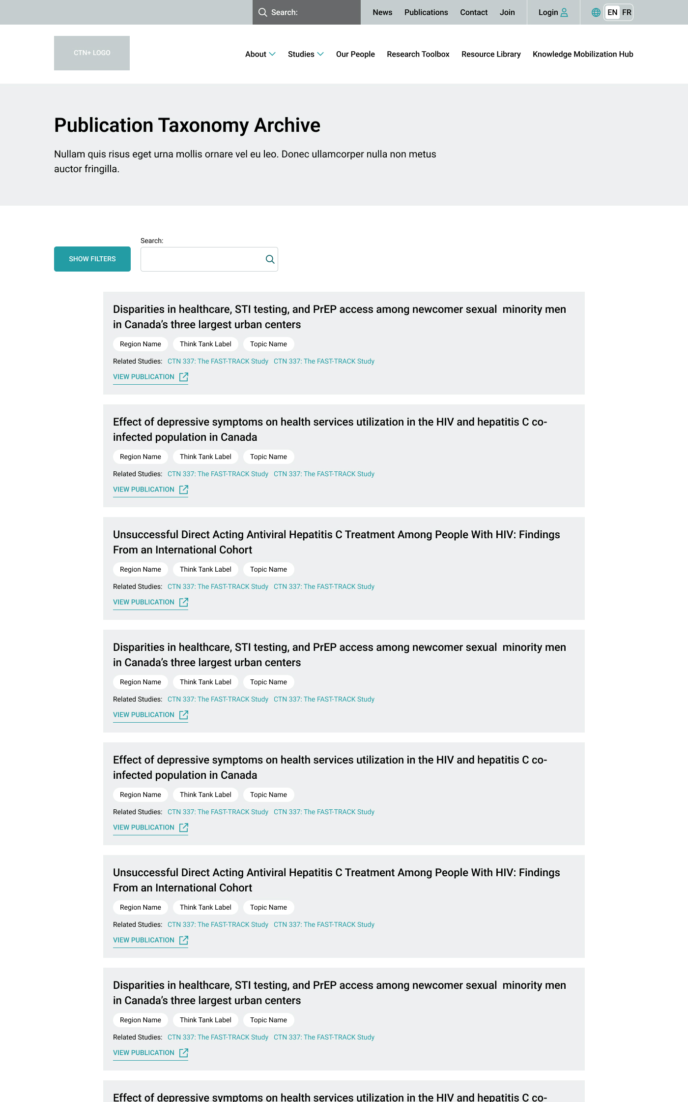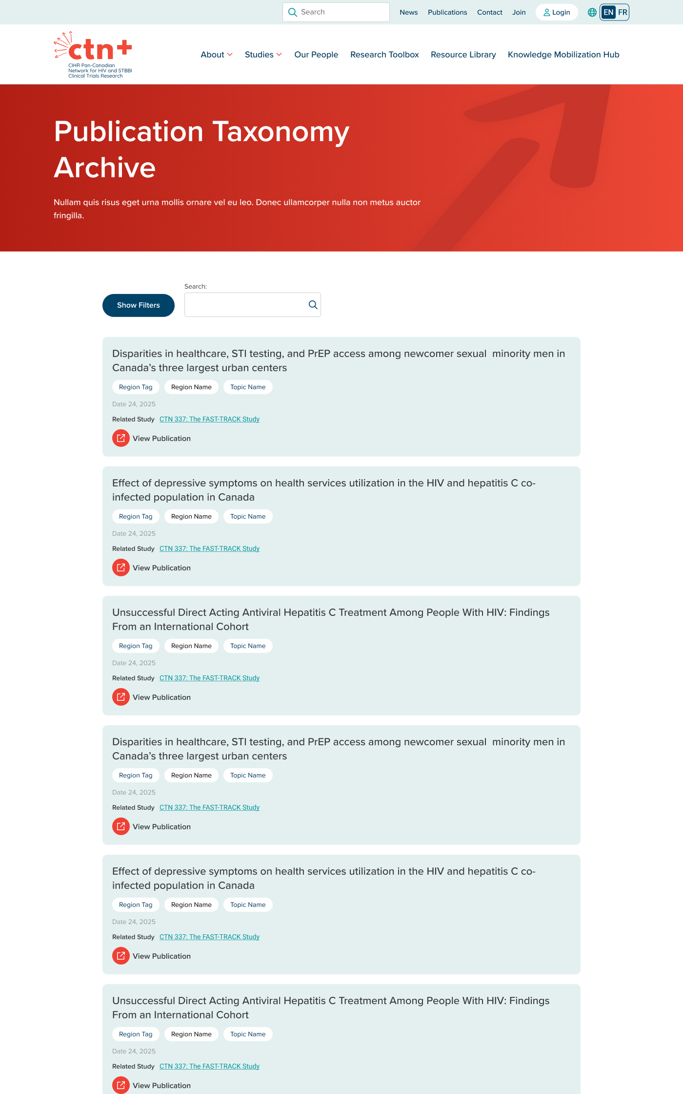 - Improve tagging, filtering, and search functionality to ensure users can easily find news, resources, studies, and publications