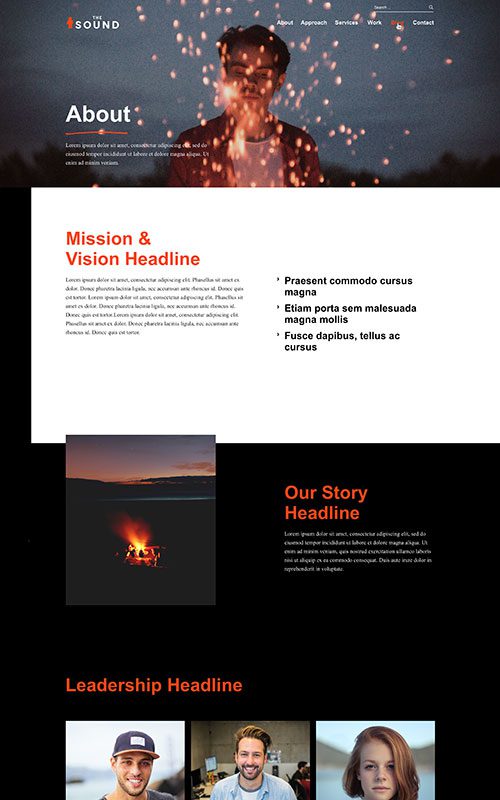The Sound is a frank, bold brand. Our goal was to address the extremely slow page load times while preserving their strong use of video and photography. Their typography and vivid colour palette was left as-is, but new photos were brought in to boost site-wide visual storytelling. We also crafted fun custom icons, which can be seen on their homepage and services.