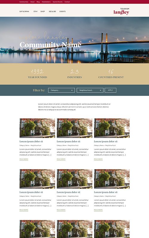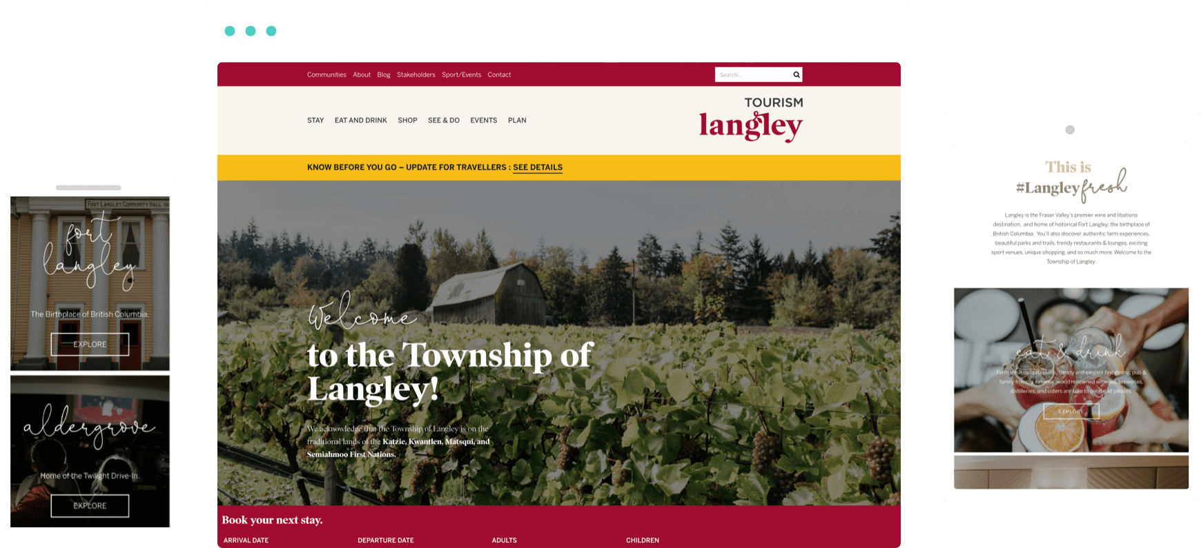Tourism Langley’s destination website was getting lots of traffic, but on-site engagement was low. Mobile visitors in particular were spending little time on site, and the bounce rate was high across all devices and traffic channels. They needed a new web design to improve the experience for tourists and locals alike who rely on their site for all things Langley Township.