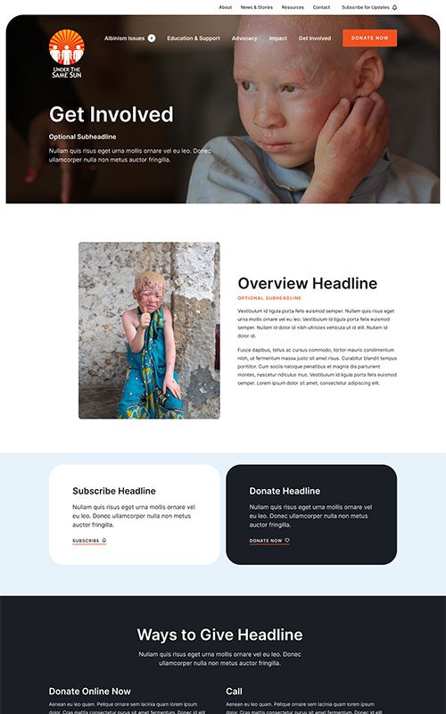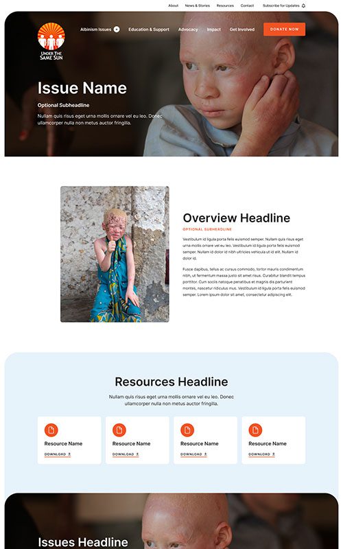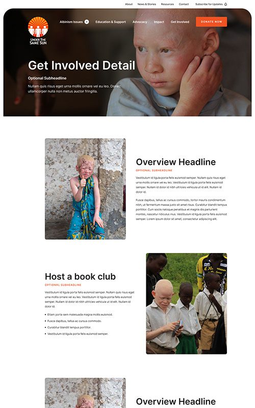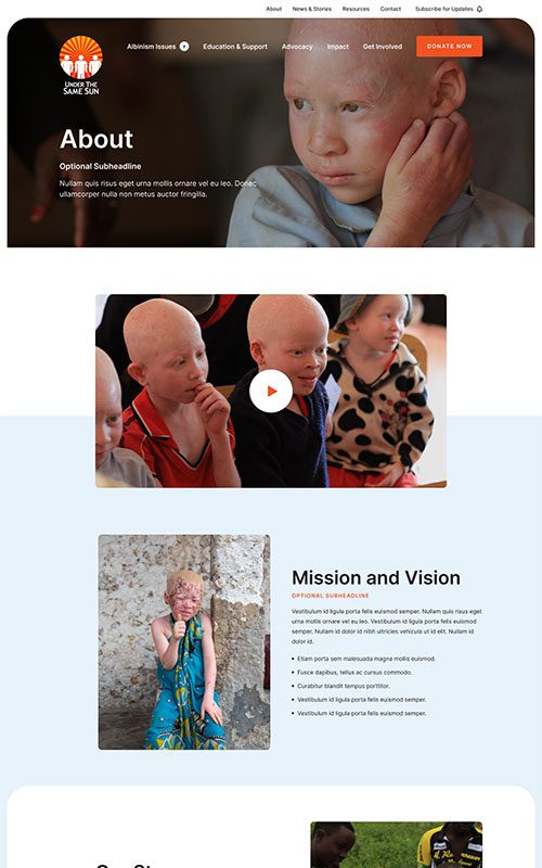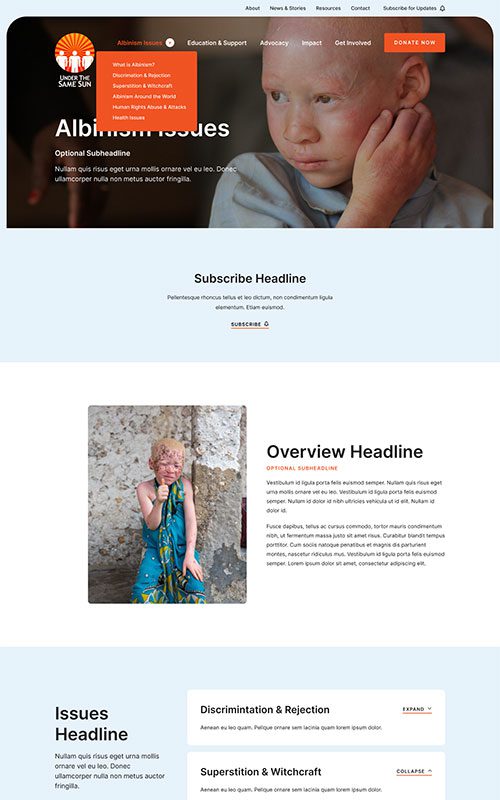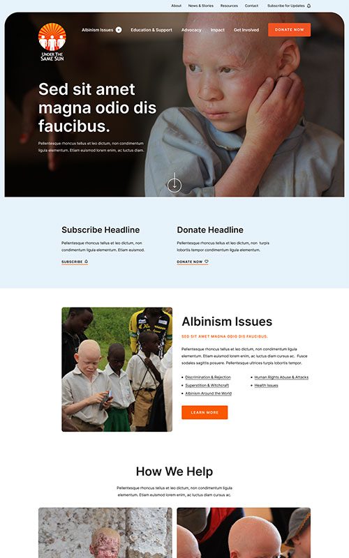 They needed a much more visual web design for a stronger emotional impact, and to better tell their story. At the same time, they still needed to provide education on persons with albinism and the issues they face.