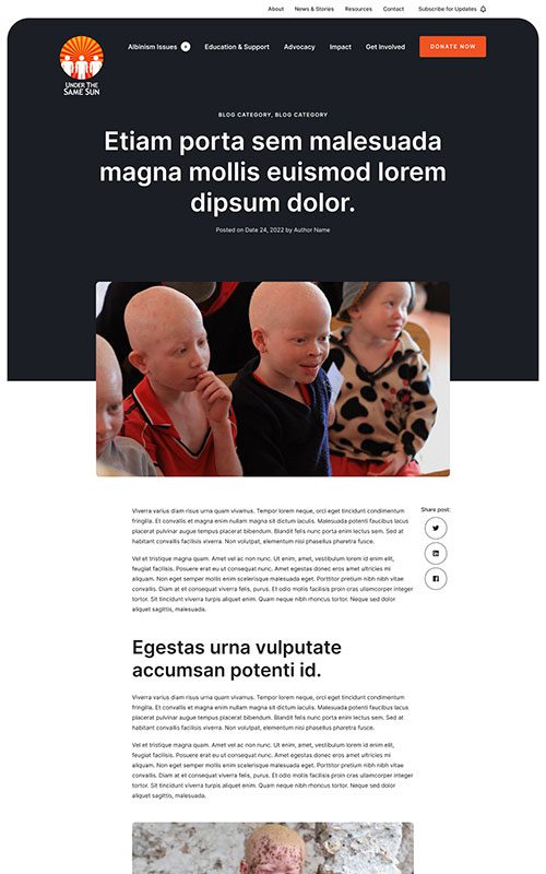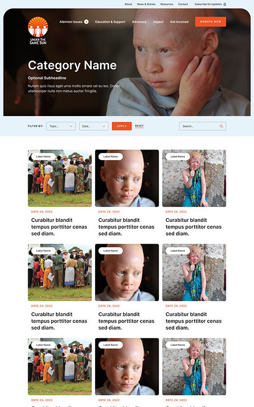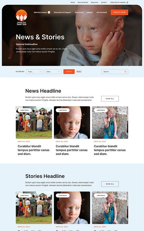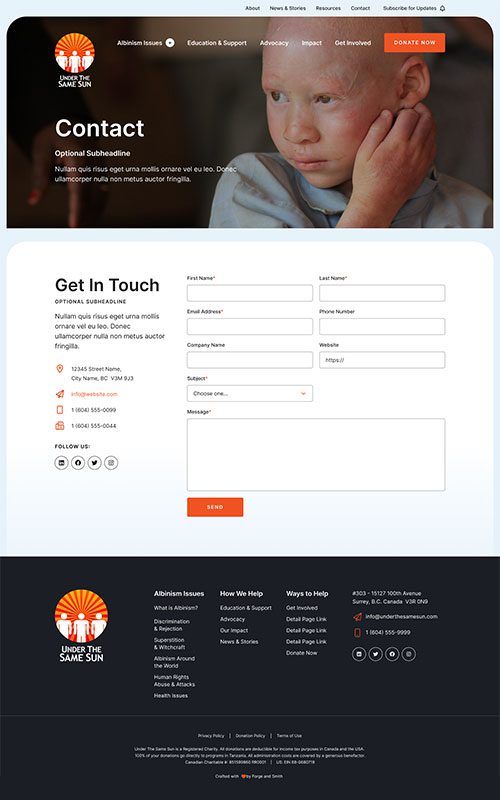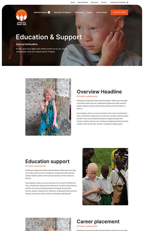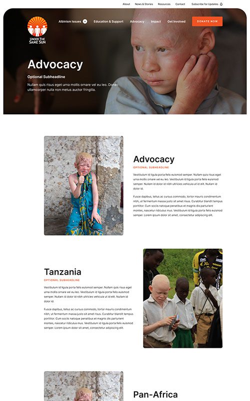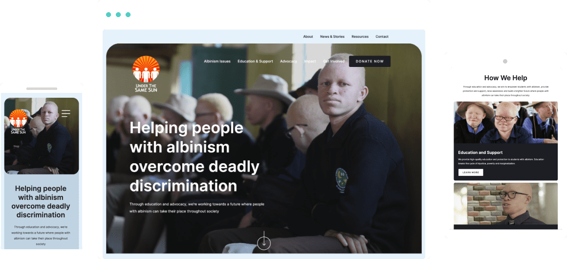 Under the Same Sun’s new Refoundry-based website not only improves on storytelling capabilities, but also better shares their on-the-ground impact. It uses photography as a visual connection to the cause, and has been designed to increase donation conversions, further helping persons with albinism.